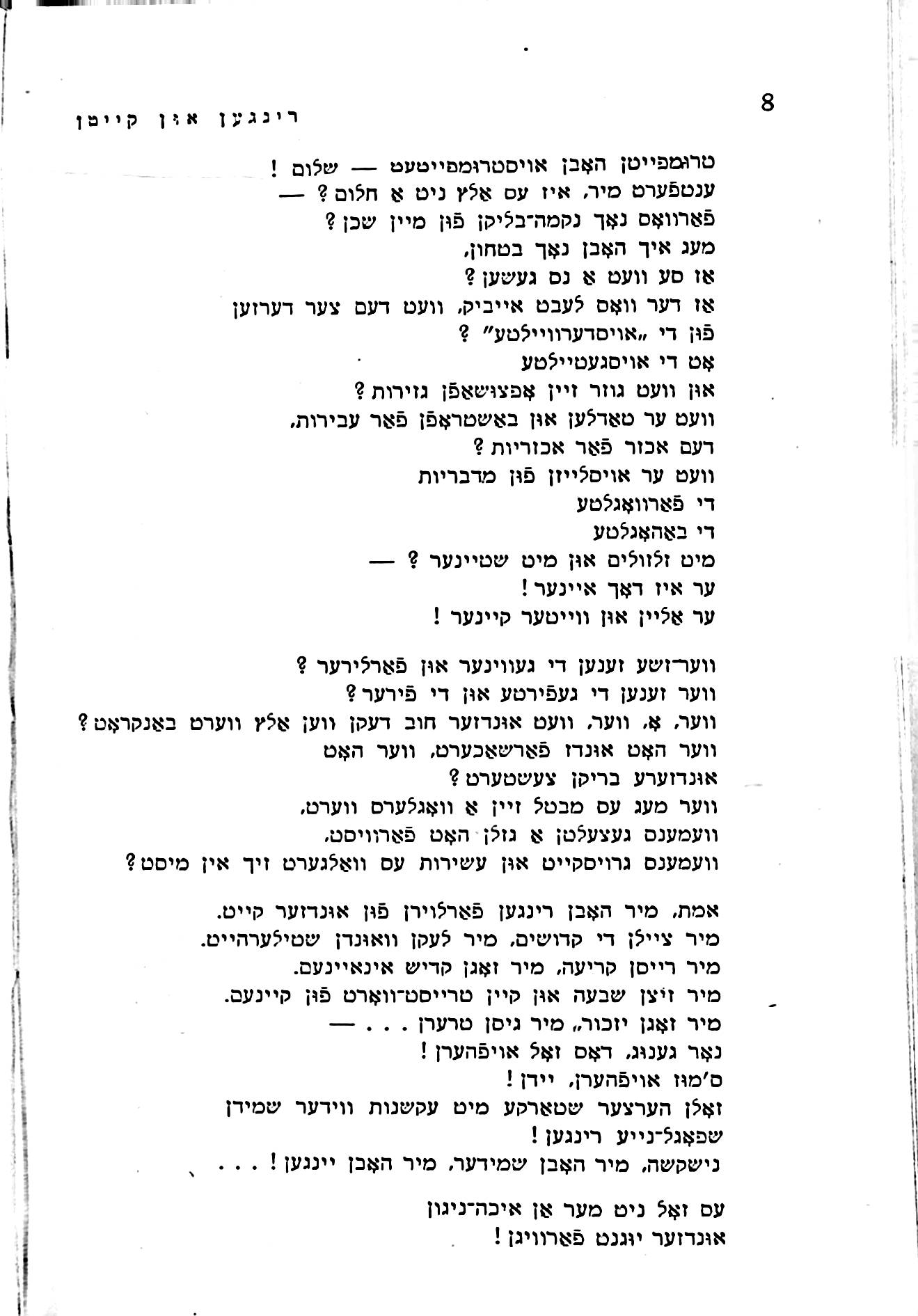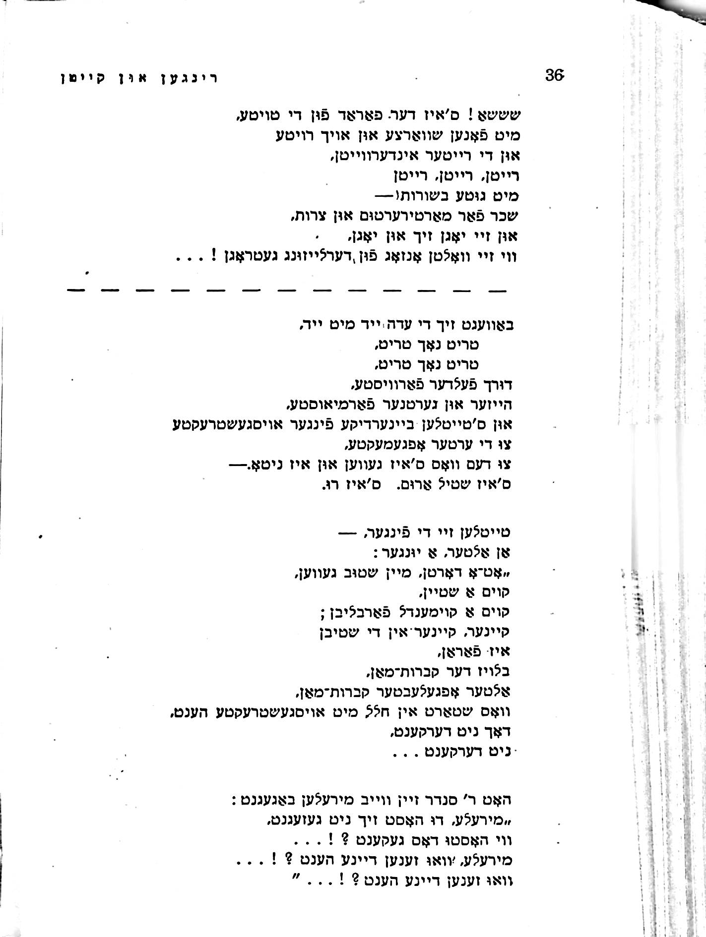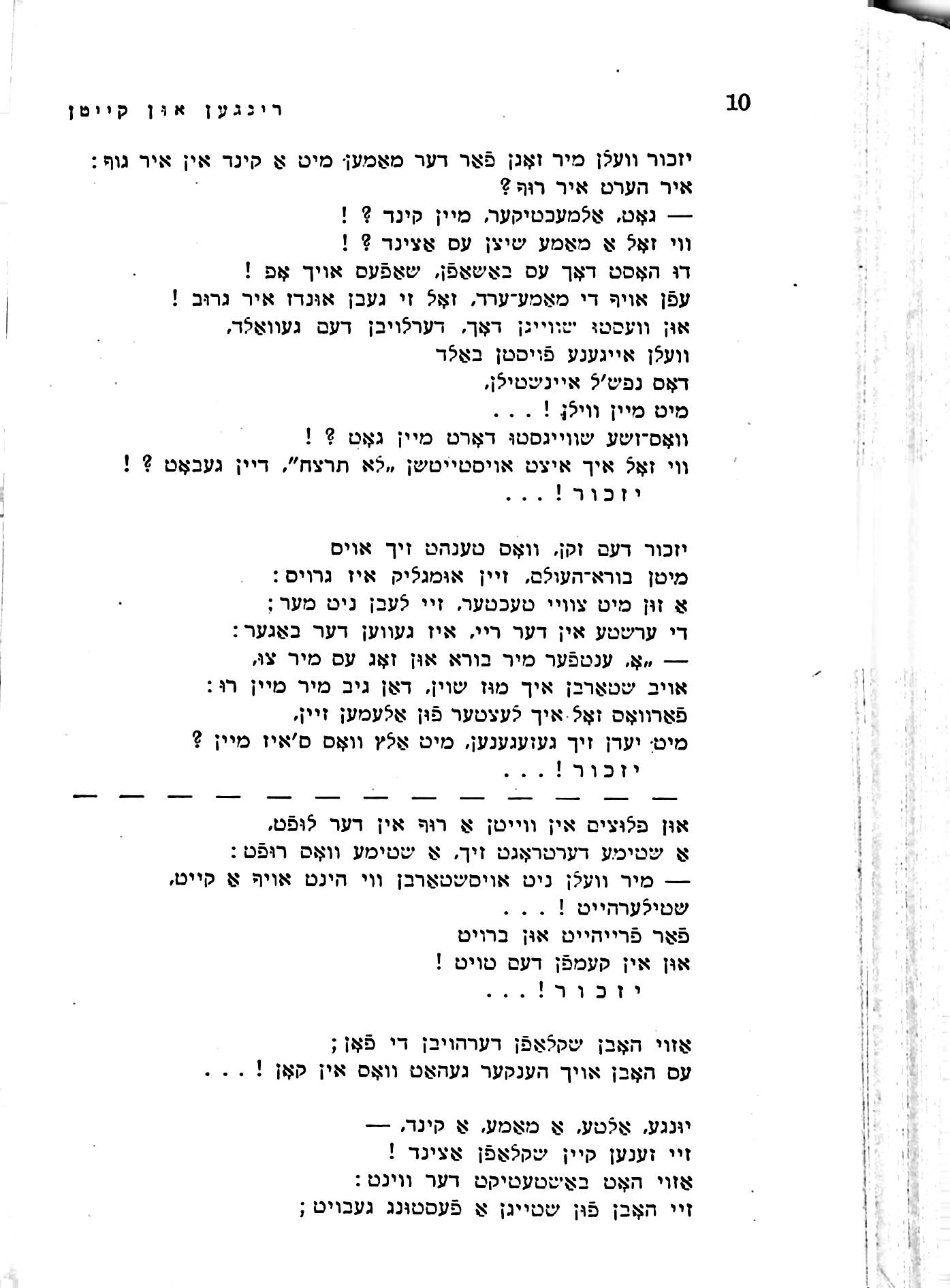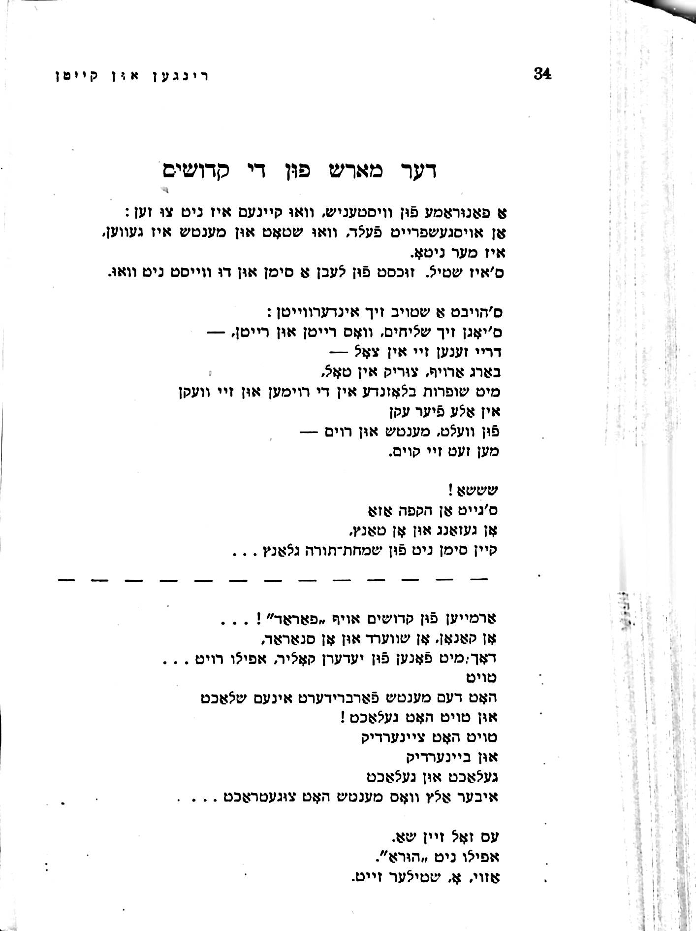 S. Palme first lived in London in 1910. From 1918 to 1922, he lived in Soviet Russia. He debuted in print in 1912 with a poem in the London-based Yidisher Zhurnal (Jewish Journal). He went on to publish poetry in: Yugnt Shtraln (Youth Beams [of Light]), Di Post, Familyen Fraynt (Family Friend), Arbeiter Fraynt (Worker’s Friend), Di Zeit (The Times), and Loshn un Lebn (Language and Life – click here for one of my copies)—all in London. He came from Mezerich in Poland, and one of his poems is included in the Mezerich Yizkor book.