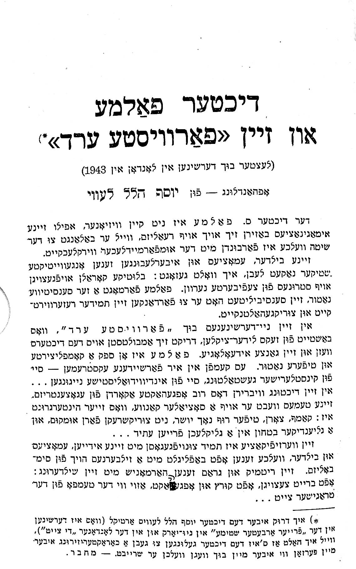 S. Palme was the pen name of Bernard (Berl) Sovinsky. He was my great-grandmother’s first cousin, born in Miedzyrzec Podlaski (Mezerich in Poland) to Baruch and Chana Sovinsky in 1888. I have previously written about his book Farviste Erd (Scorched Earth), published in London in 1943.