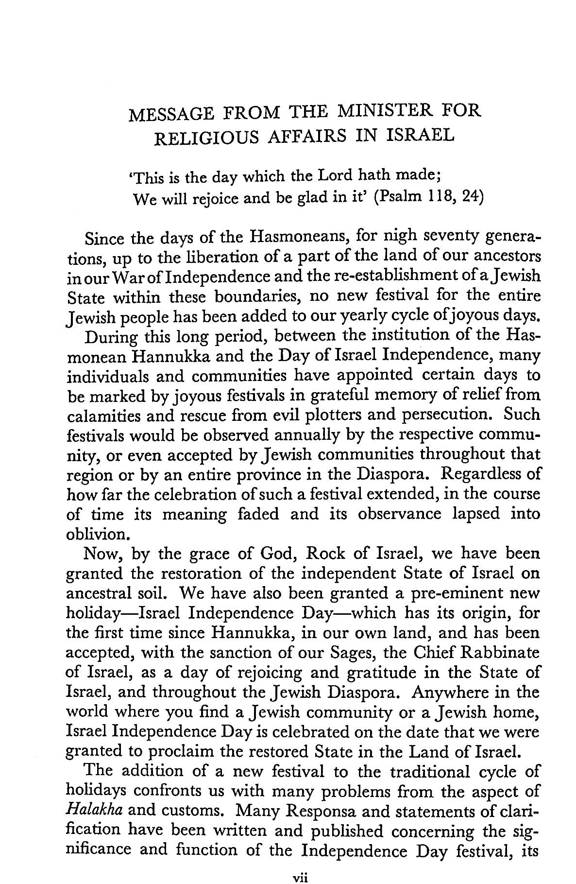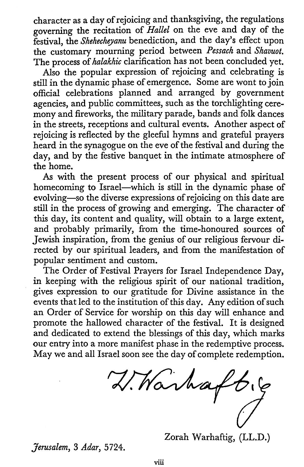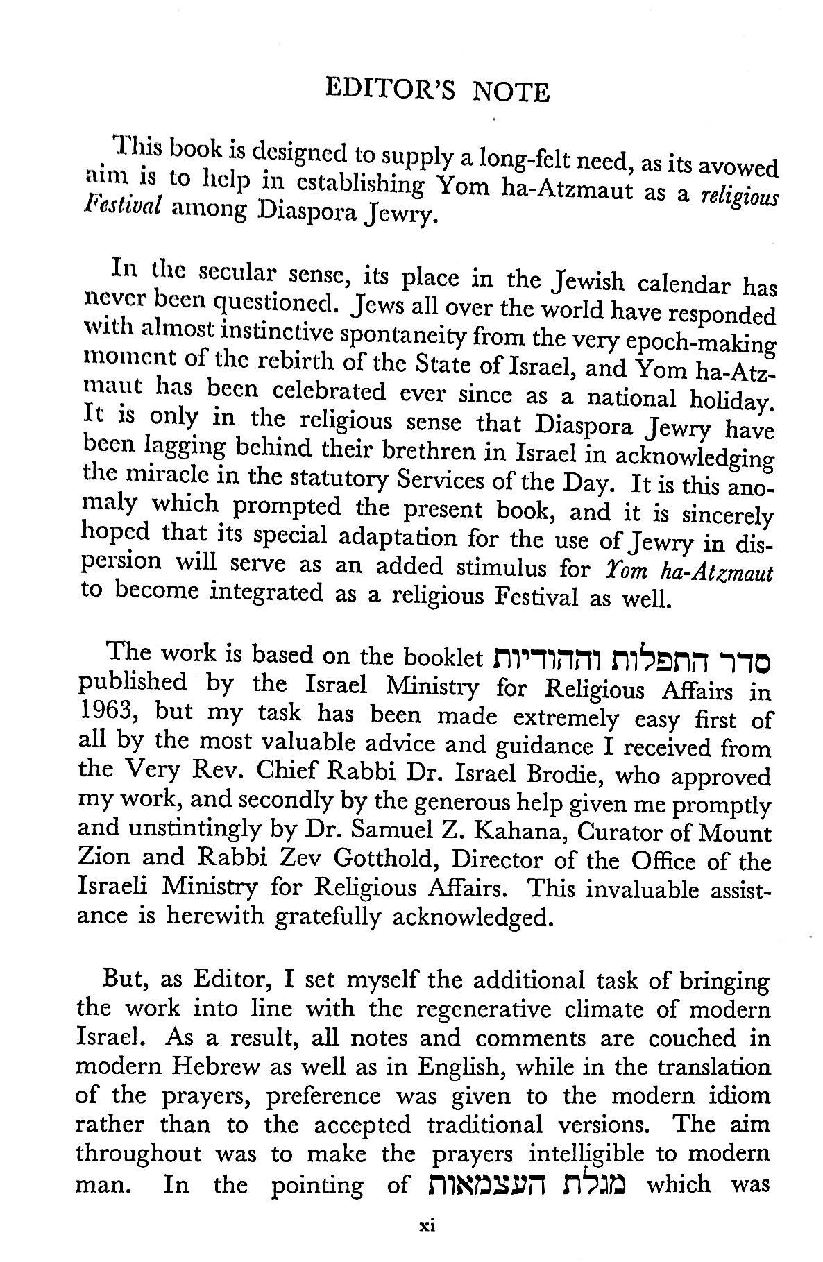 In 1972, his successor, Chief Rabbi Immanuel Jakobovits, was asked to endorse a second edition of this Machzor. He declined to do so, but instead agreed to write a foreword, like his predecessor. Rather than offer an endorsement, Rabbi Jakobovits took issue in the foreword with the fact that the Machzor reflected solely the halachic views of the Chief Rabbinate of Israel, and therefore differed considerably from the way in which Yom Ha’atzmaut had begun to be observed by Zionist congregations in the Diaspora.