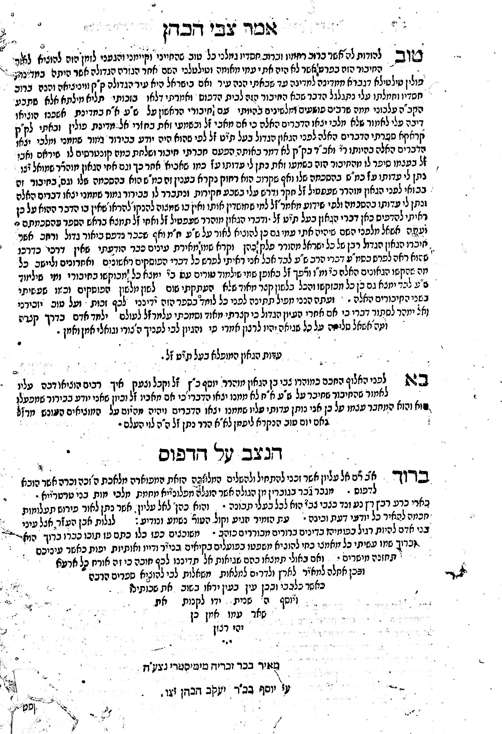 Rabbi Tzvi HaCohen had been in some controversy, as he was accused of plagiarizing his father, Rabbi Yosef Katz’s writings, which he denied. As we shall see, this book includes a rebuttal of that with a note from the then late Rabbi Yomtov Lipman Heller, known as the Tosefes Yomtov.