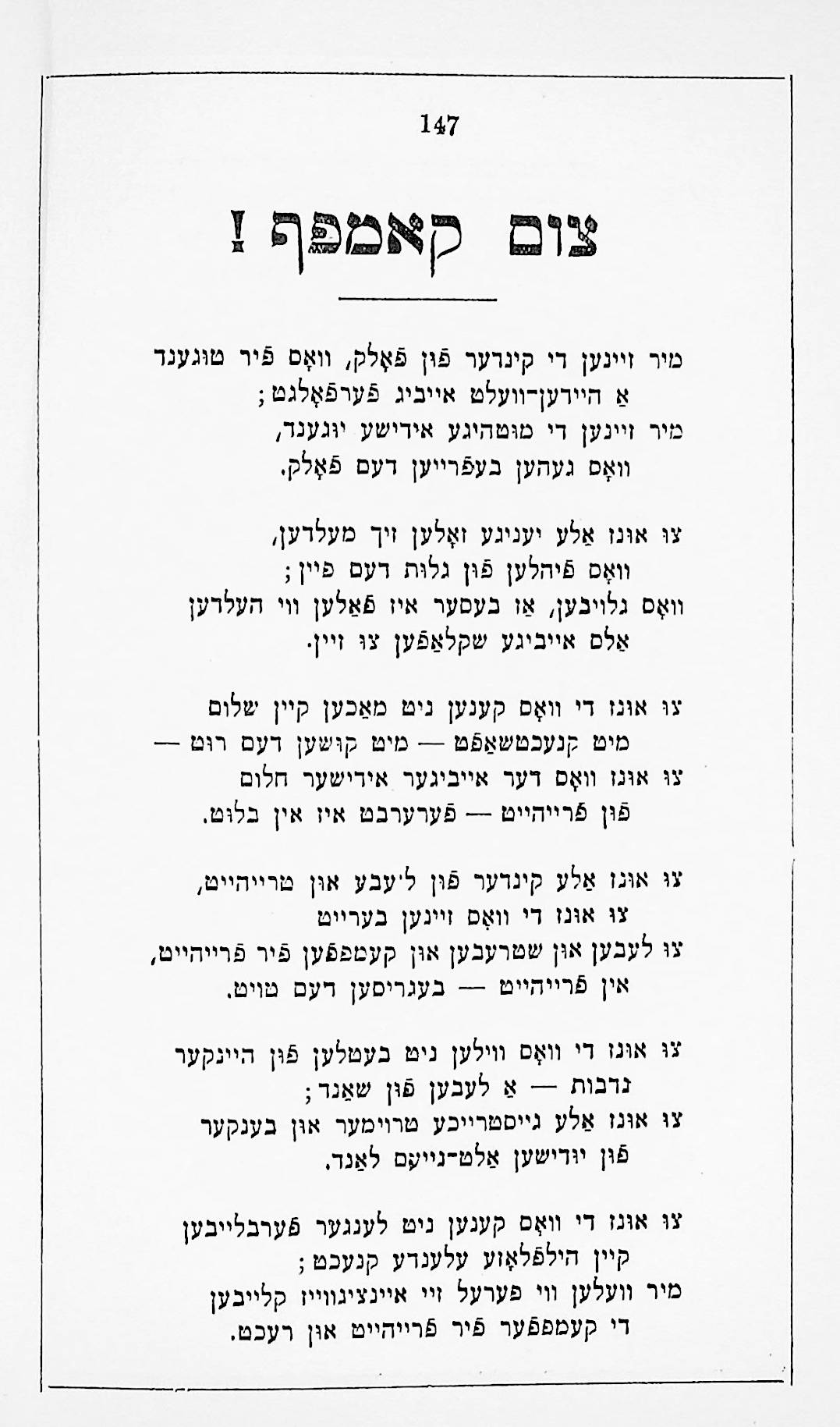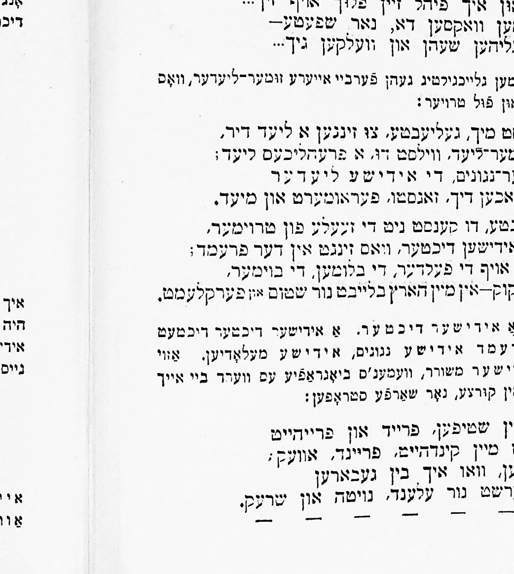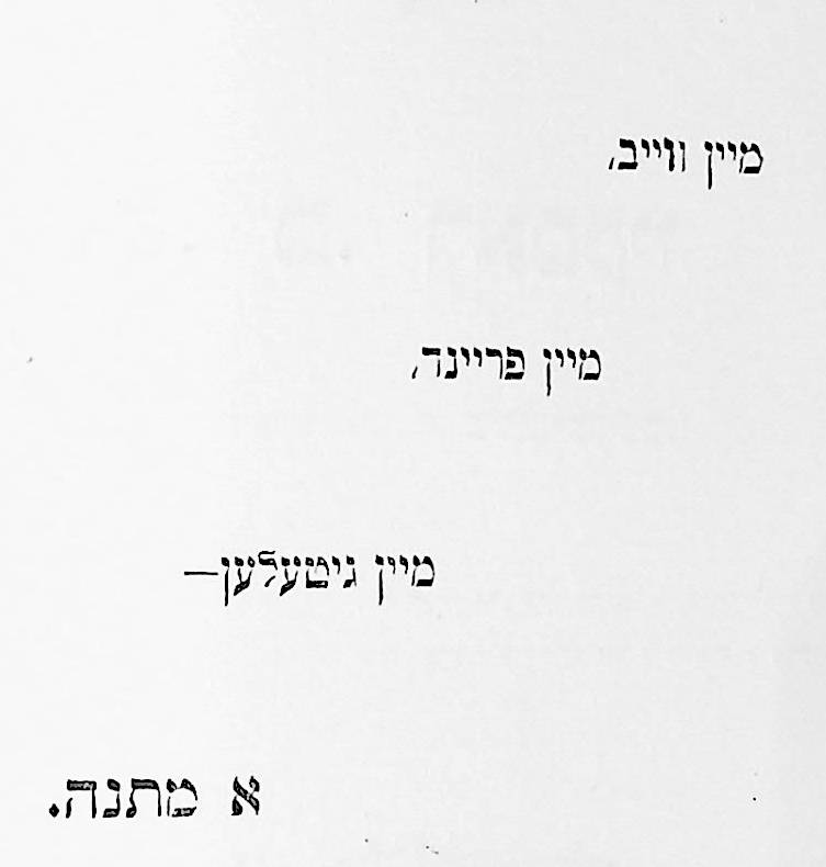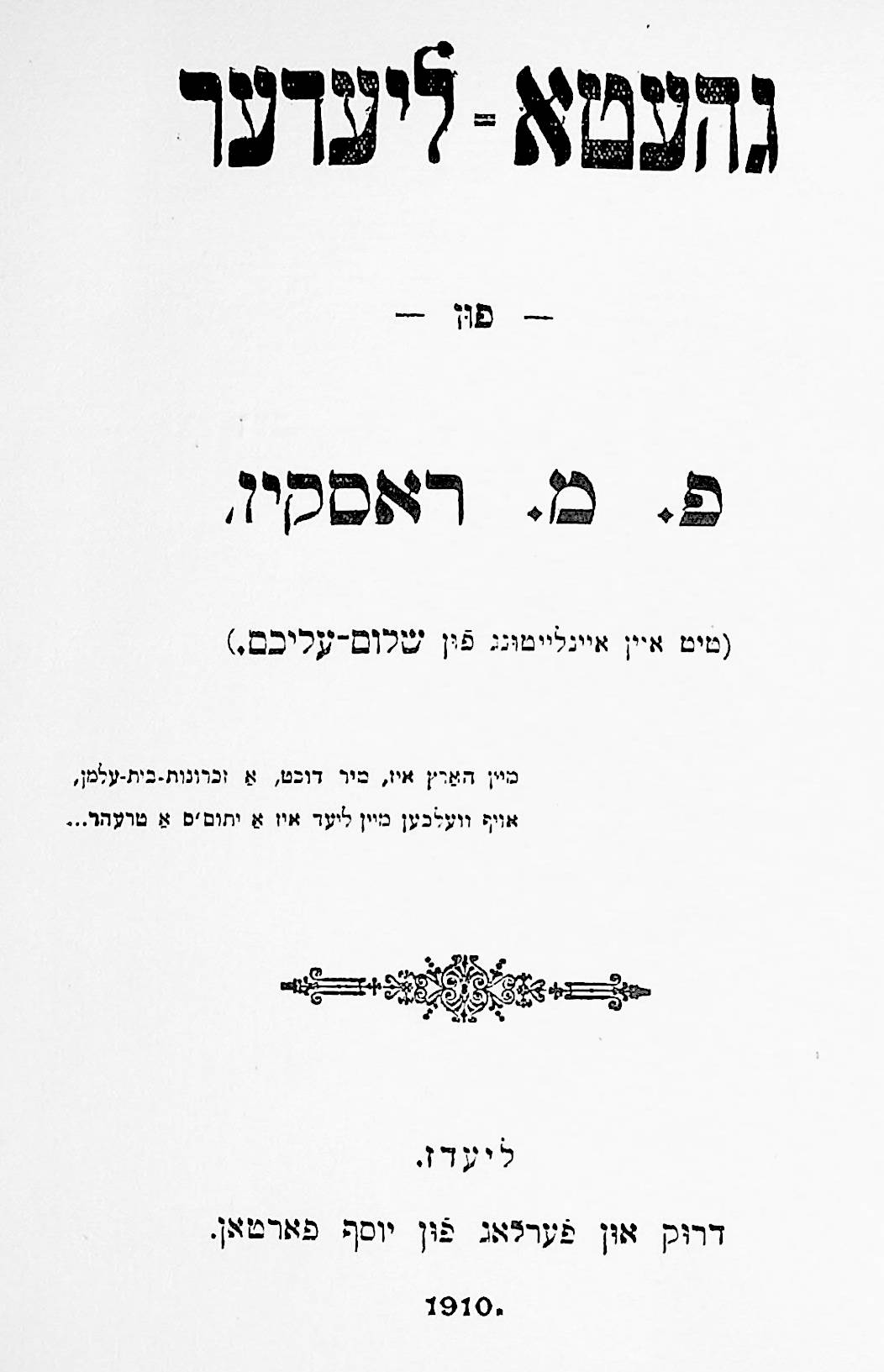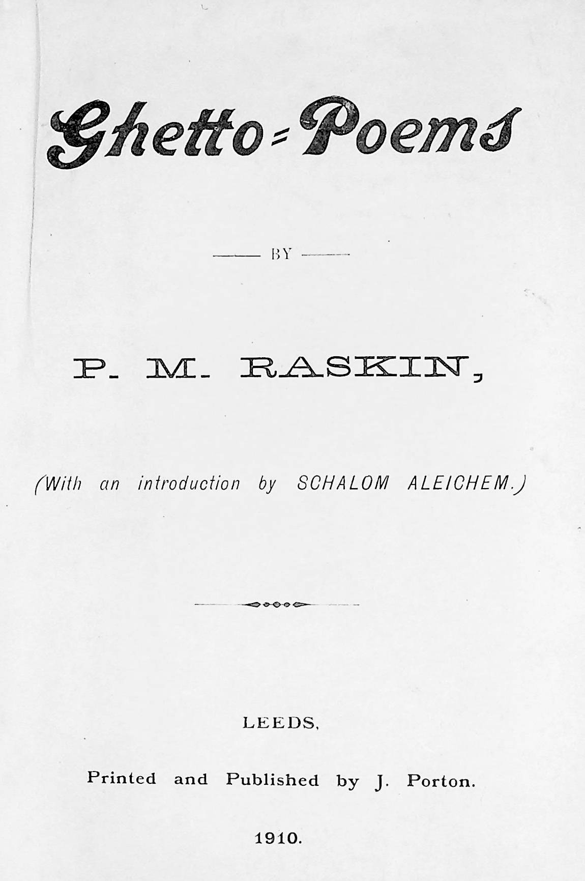 This was his first published book, printed by Joseph Porton, the Jewish printer of Leeds, in 1910. It is also notable for having a preface written by the Yiddish writer Sholem Aleichem.