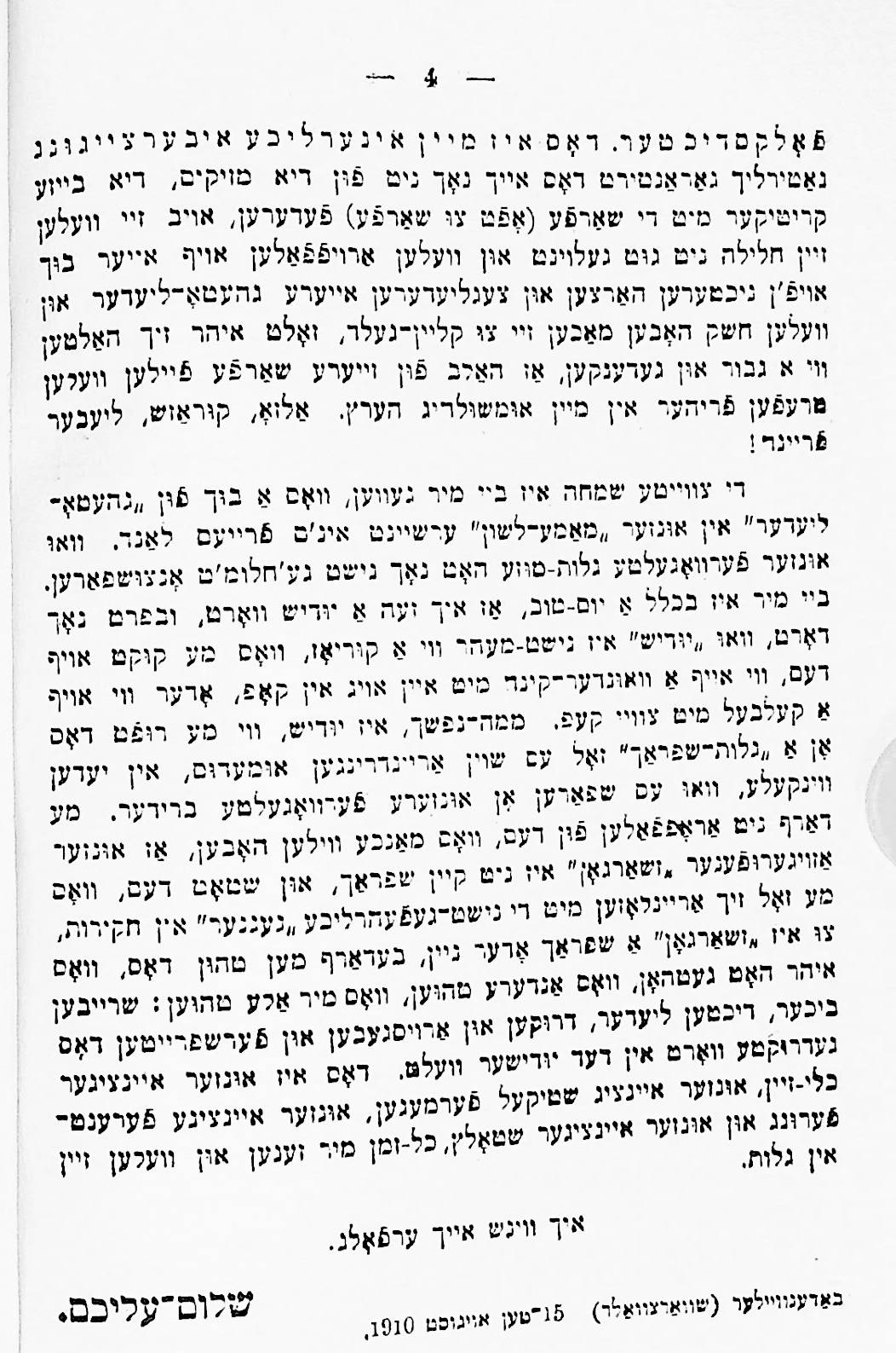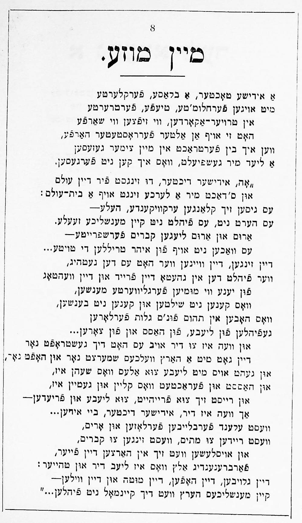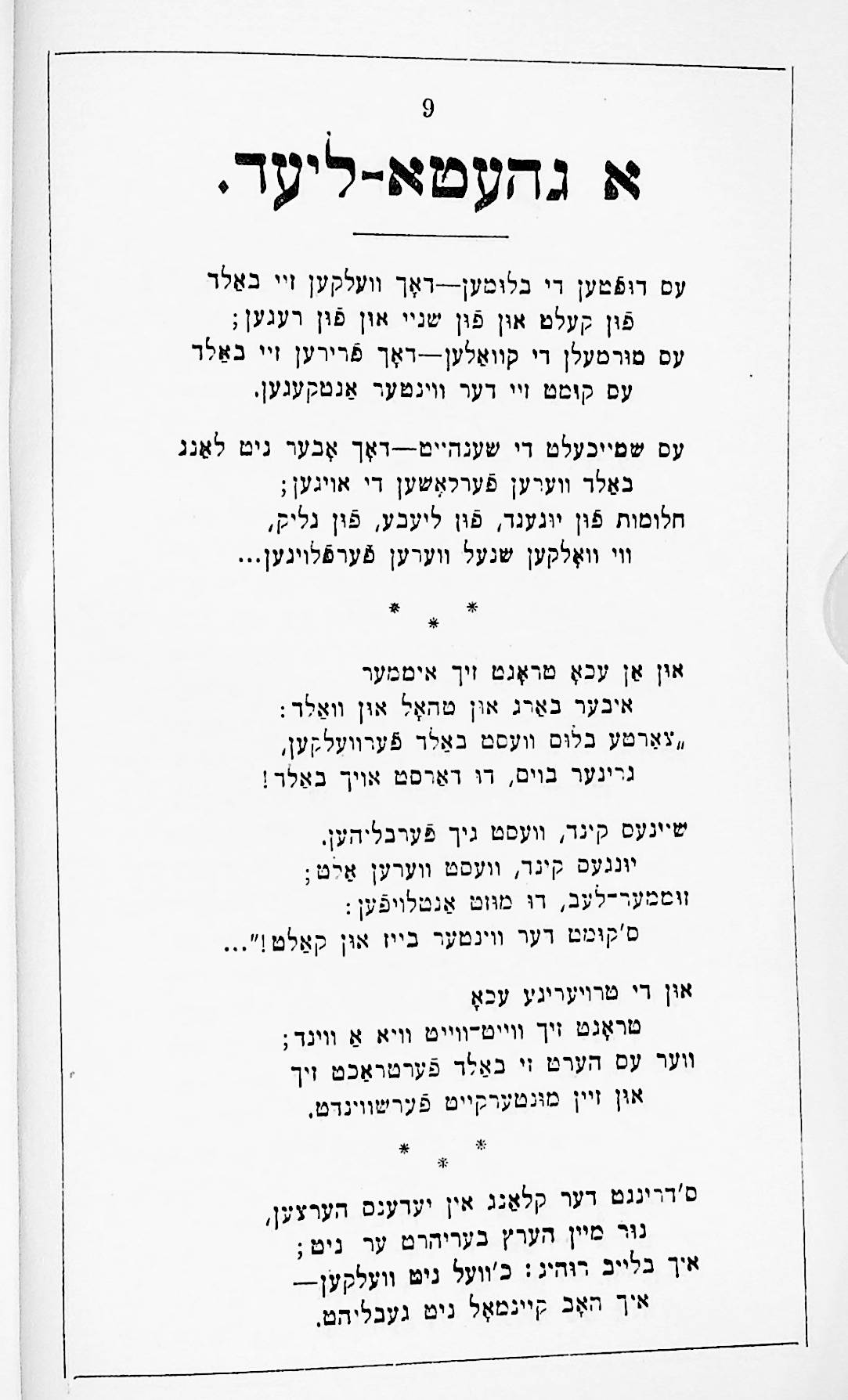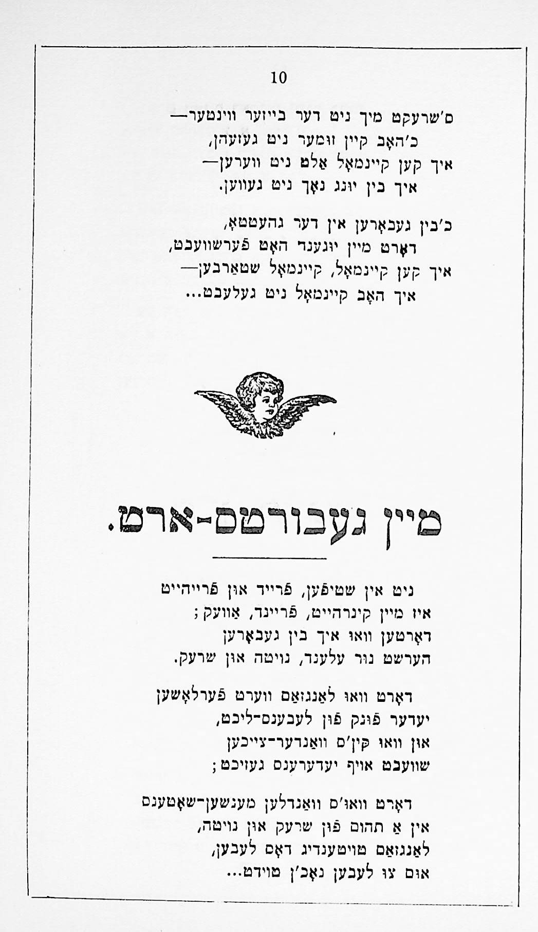 This was his first published book, printed by Joseph Porton, the Jewish printer of Leeds, in 1910. It is also notable for having a preface written by the Yiddish writer Sholem Aleichem.