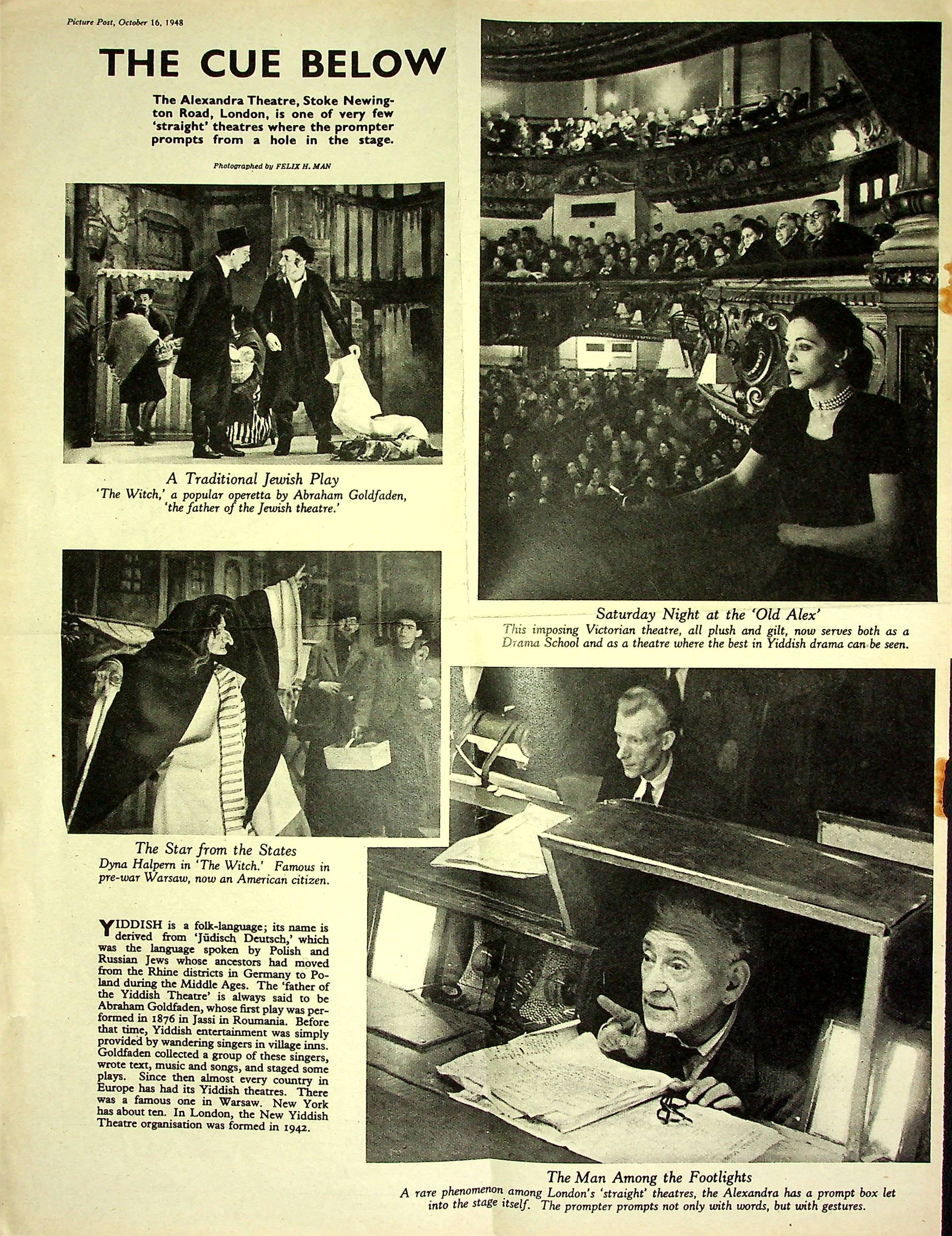 The photographs of the theatre were taken by Felix H. Man (1893 – 1985), whose portrait hangs in the National Portrait Gallery (NPG x29114). His original name was Hans Felix Sigismund Baumann. Felix Man was a refugee from Nazi Germany, an active photo-journalist from the aftermath of the First World War, who had emigrated to London from Berlin in 1934. He was the Chief Photographer for Picture Post from 1938 to 1945. ‘The Lights Go up in London’, a 1945 photograph, is in the Tate Gallery. After the war, he began to collect lithographs and he is regarded as an important innovator in European photojournalism.