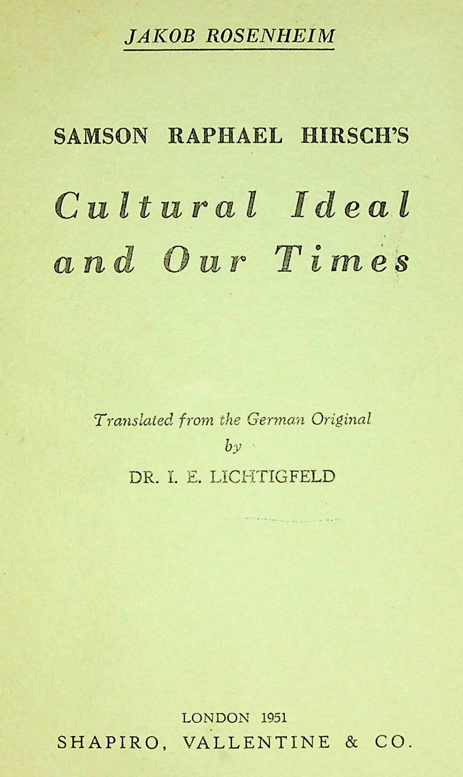 The translator is Rabbi Dr. Isaac Emil Lichtigfeld (1894 – 1967). Rabbi Lichtigfeld was born in Burstyn, Galicia, and his family having moved to Germany he served in the German army during World War I. He practised as a lawyer in Dusseldorf and sought refuge in Britain in about 1933.