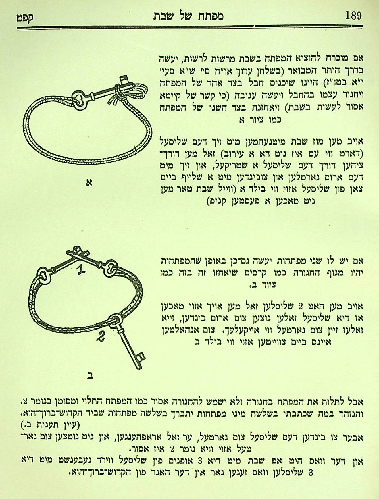 In 1924 and 1926 he published this version of the Kitzur Shulchan Aruch, which had been written in the previous century by Rabbi Shlomo Ganzfried. It is a hefty volume that includes Rabbi Feldman’s own commentary, Ir David (the City of David) with diagrams, tables and explanations. The diagrams – how to tie Tzitzis, tephilin etc. are very striking and clear.