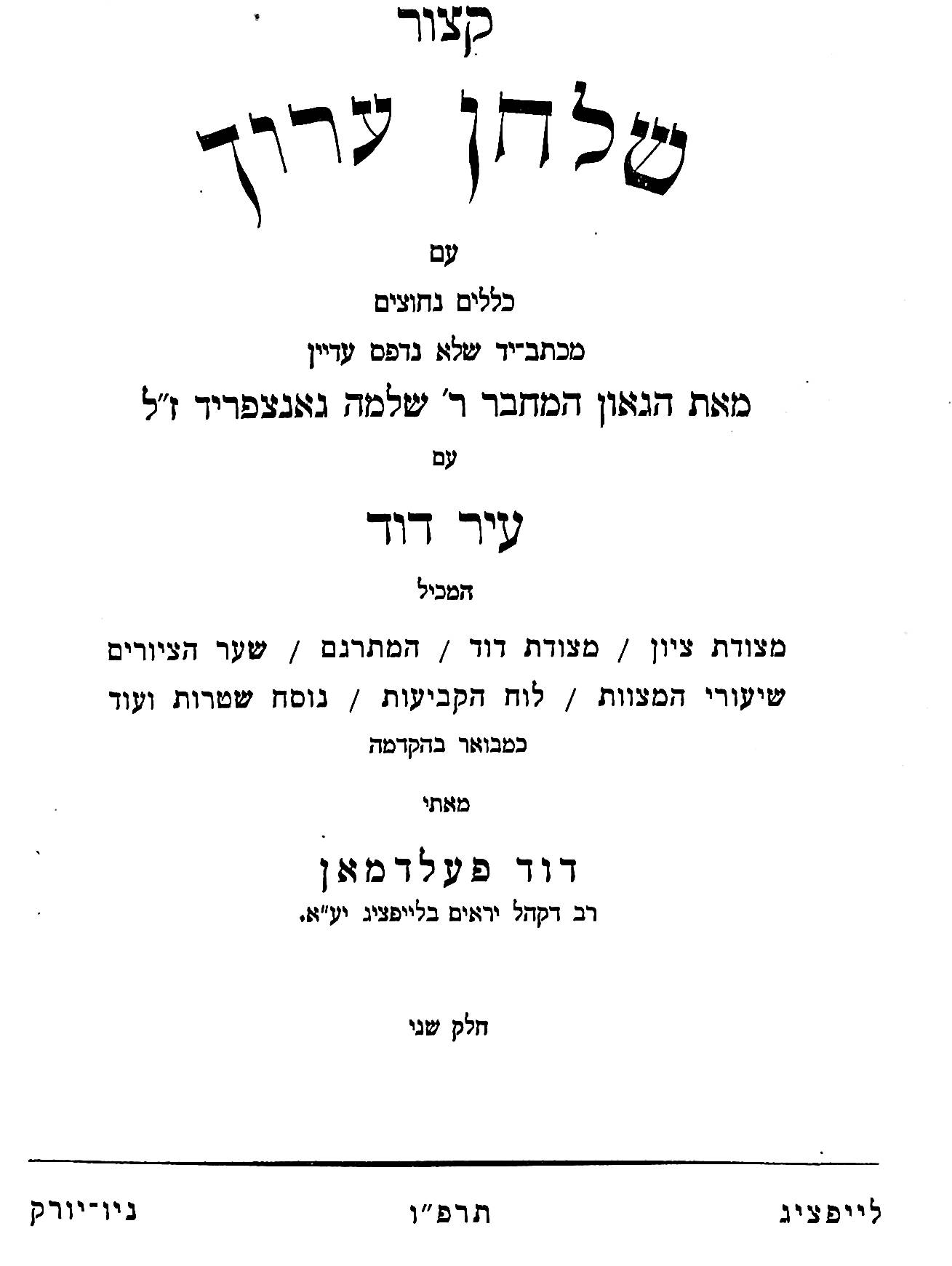 One thought on “Kitzur Shulchan Aruch by Rabbi Shlomo Ganzfried, with Ir David, by Rabbi David Feldman, Leipzig, 1924.”