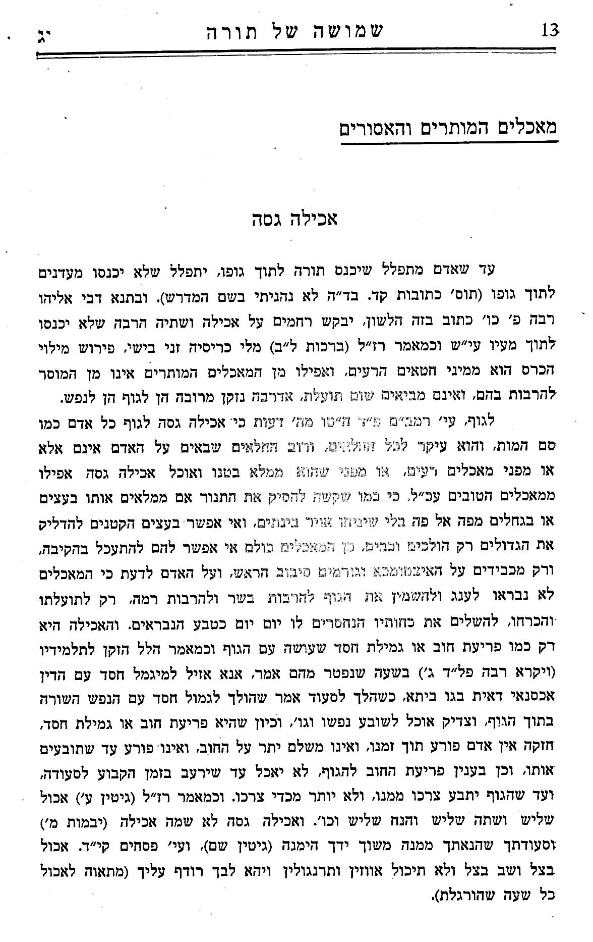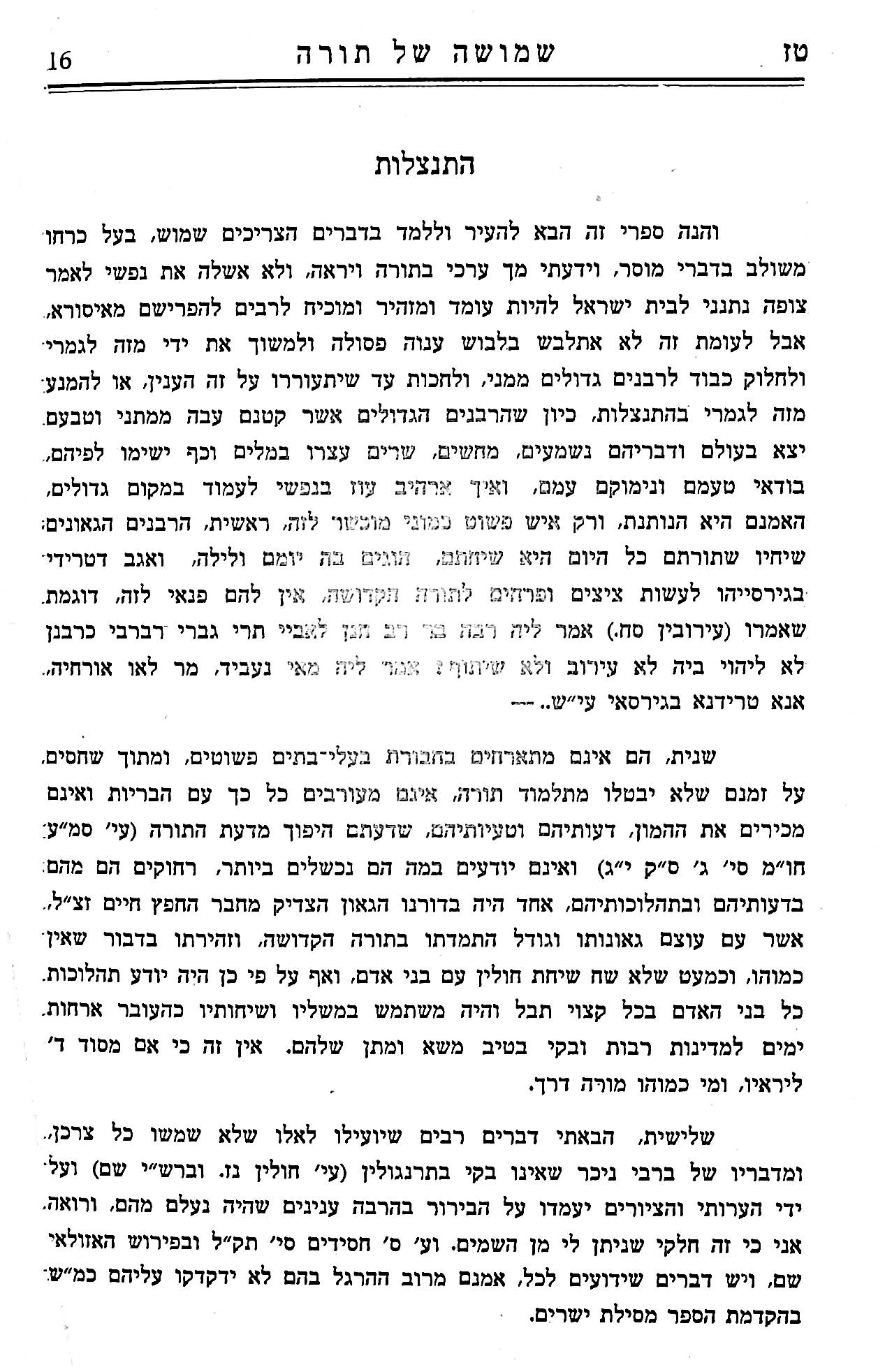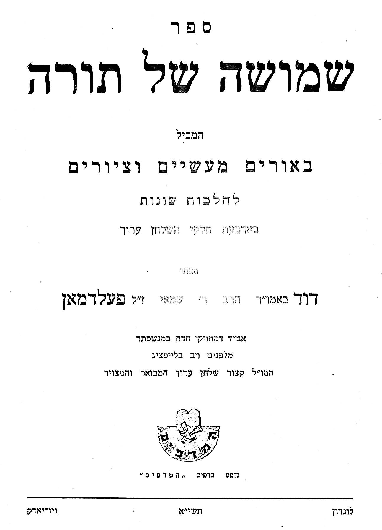 Rabbi David Feldmann announced his intention to publish a book called Shimusha Shel Torah at the end of his annotated edition of the Kitzur Shulchan Aruch in 1926.
