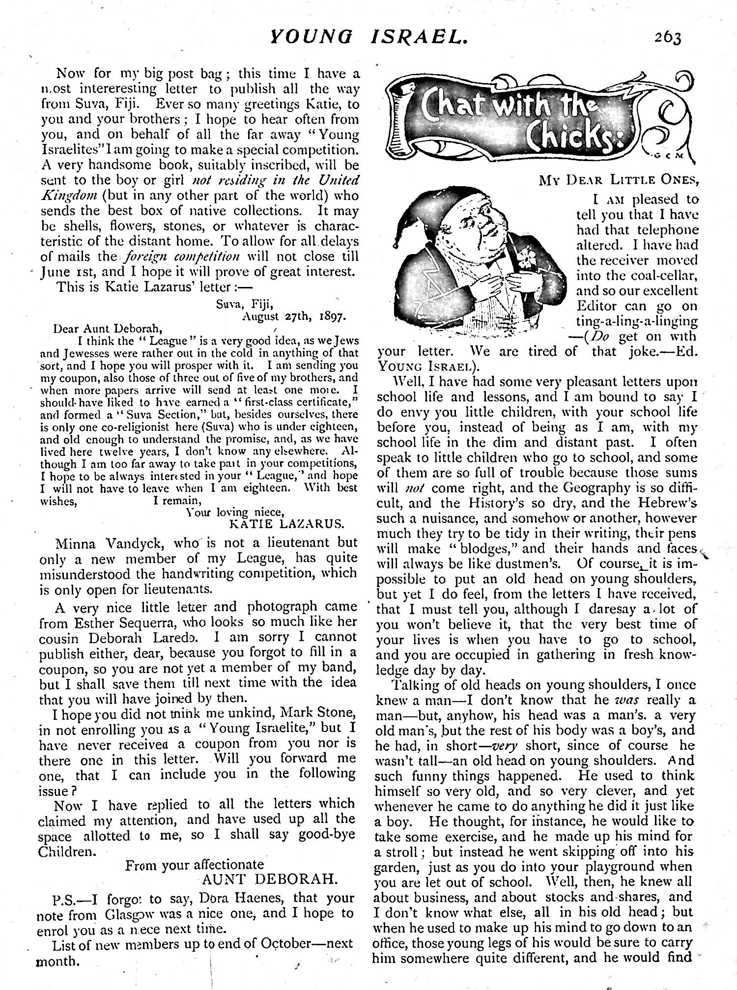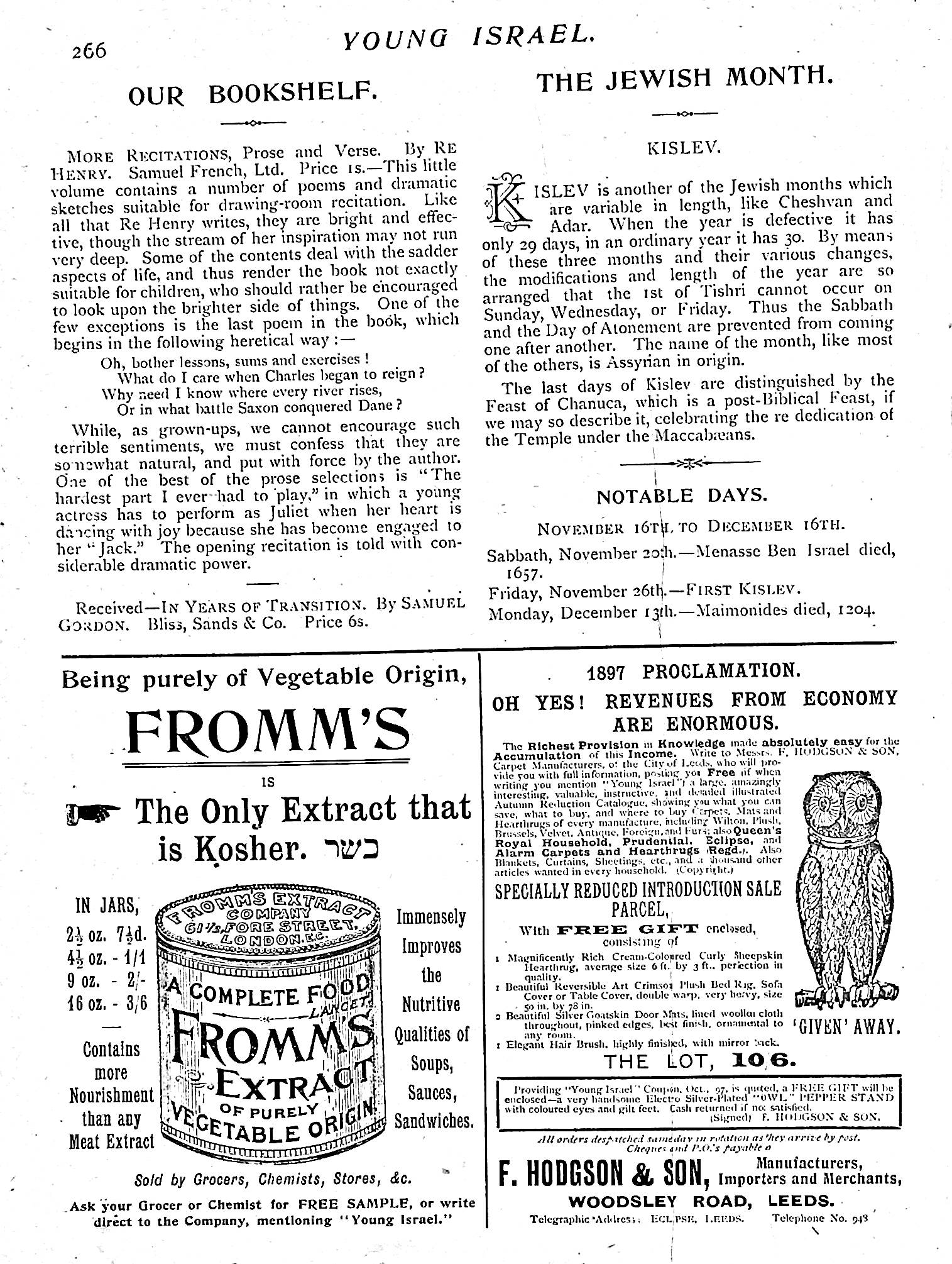 The only periodical of its kind for young Jews in Great Britain at the end of the nineteenth century, Young Israel models itself to a degree on other children’s magazines of the time. Young Israel was published monthly between 1897 and 1901. My copy is from November 1897 – or so I thought, until I found that I was missing the original December 1897 wrapper of advertisements, and I have that month as well.