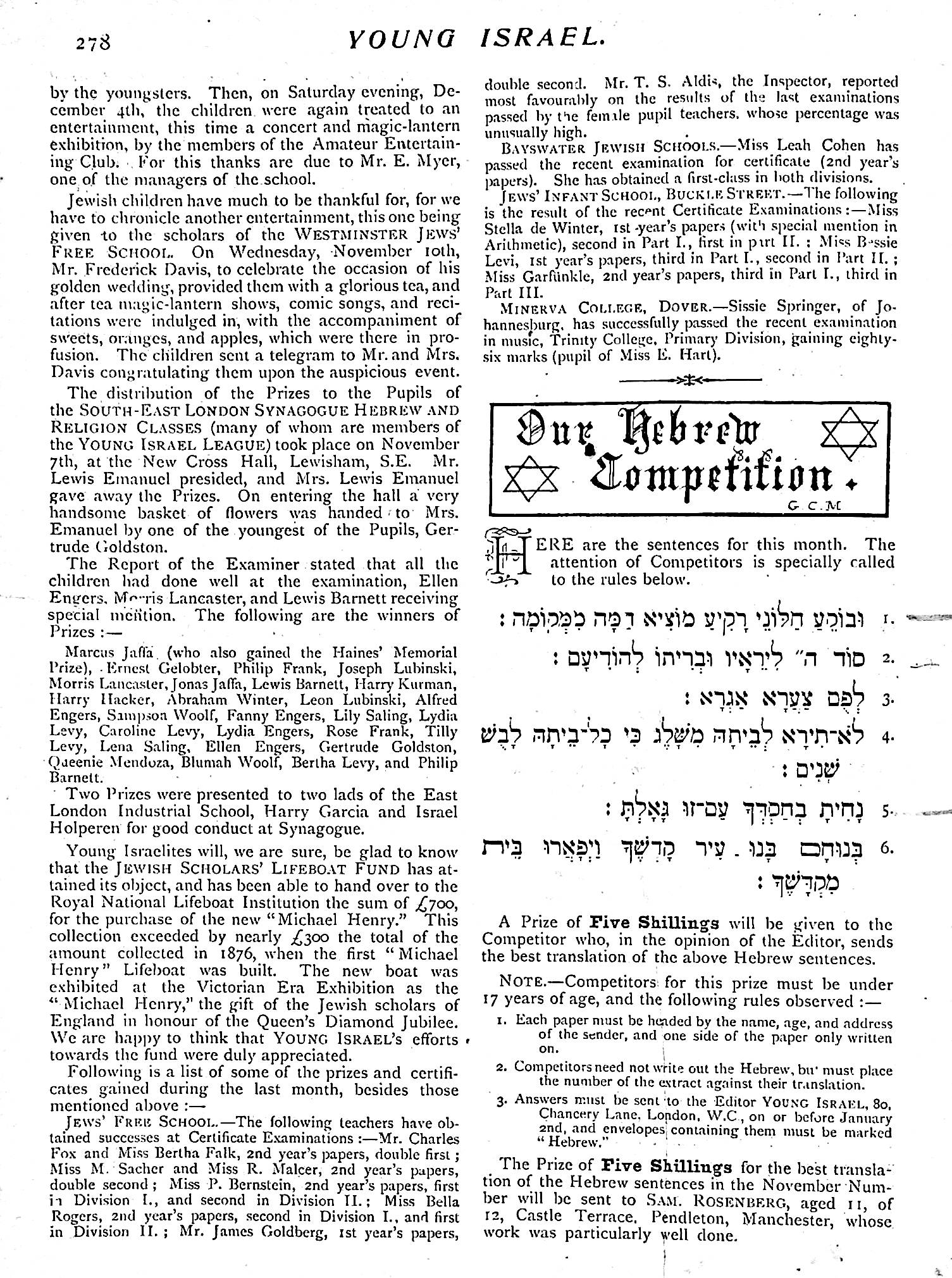 The children, who were the target audience, were mainly from the older established anglicised part of the community, rather than the immigrants, and the content reflects this. It makes a fascinating read, as well as naming prizewinners and pupils from various schools.