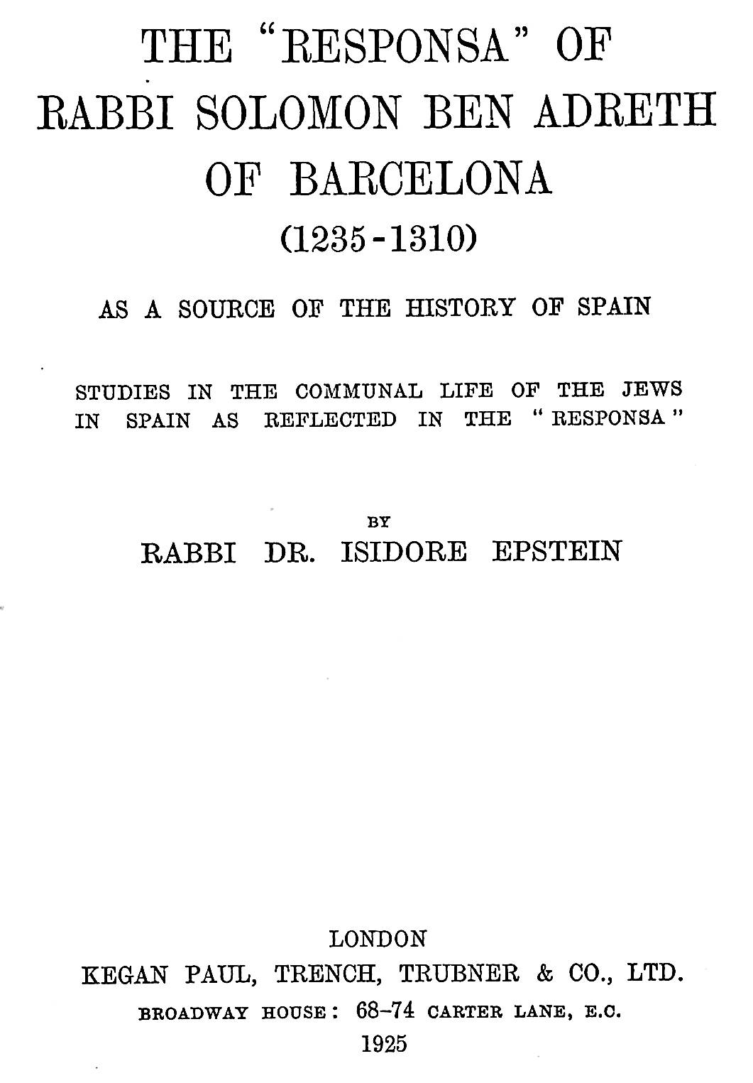 It was the Ph.D. thesis of Rabbi Dr. Isidore Epstein, and probably his earliest publication.