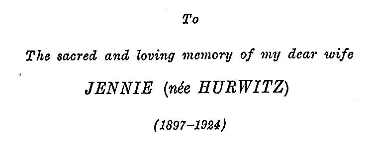 Rabbi Epstein married twice. His first wife, Jeanie, was from Belfast. She tragically died at the age of 27 after the birth of their second child, and this book is dedicated to her. Rabbi Epstein married again, to his second wife, Gertrude. He died on 13 April 1962.