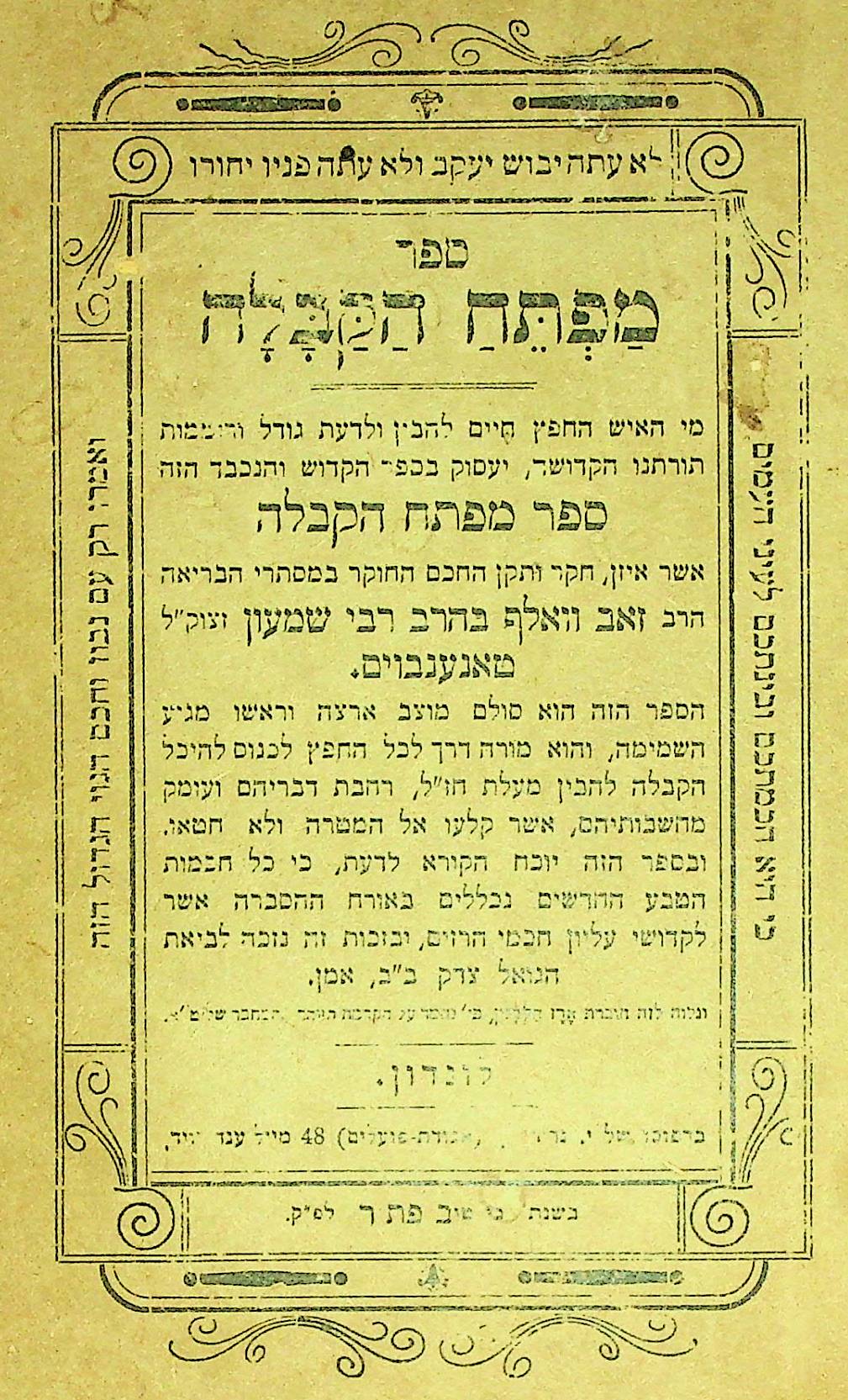 Mafteach HaKabalah by Rabbi Zev Wolf Tannenbaum, London, 1922.