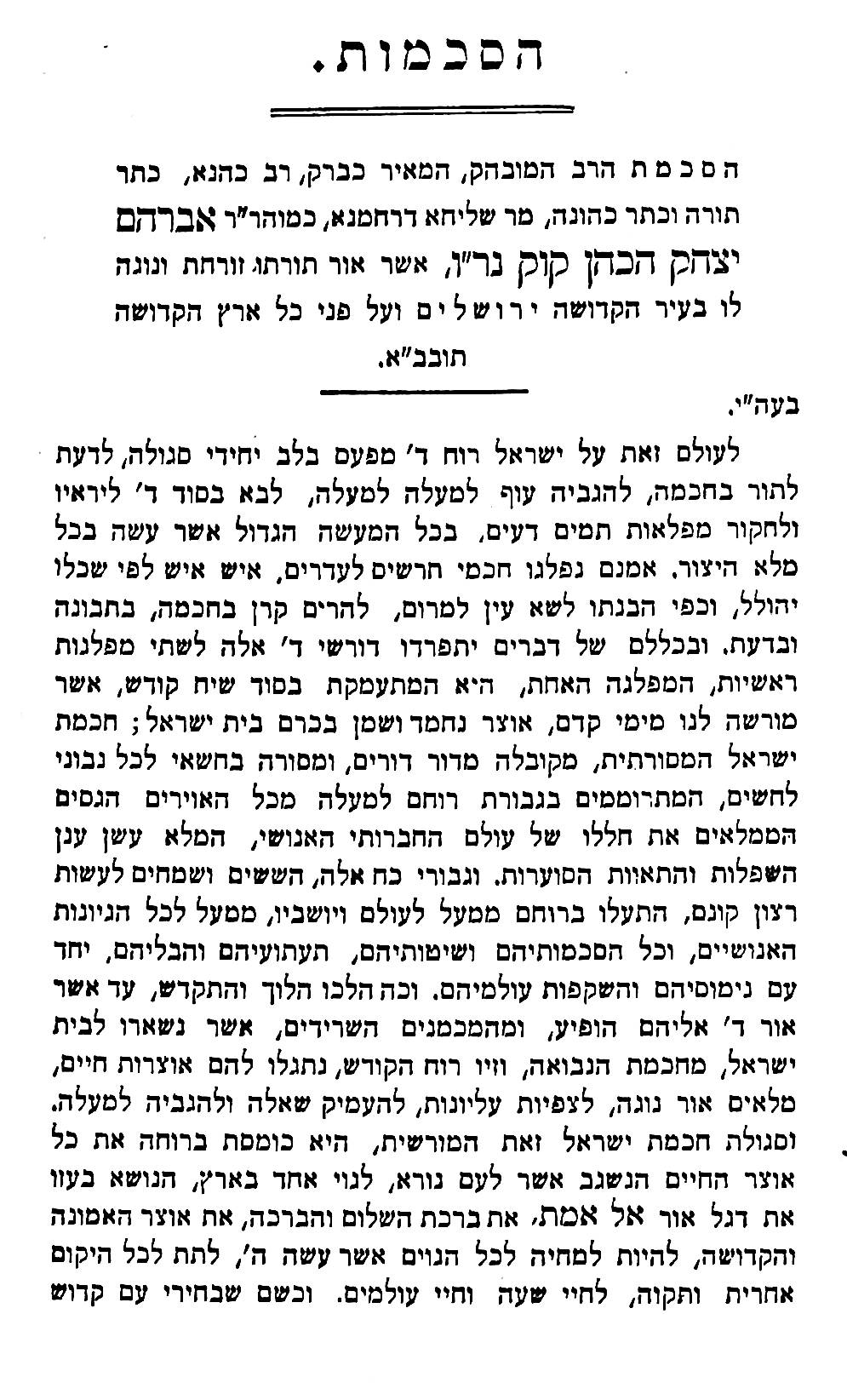The book starts with two key approbations (haskomos).  The first is an unusually lengthy one from the famous Rabbi Avraham Isaac Hakohen Kook.  He was Rabbi of the Machzikei Hadath Synagogue in Brick Lane, London, during the First World War, before leaving for Jerusalem and becoming Chief Rabbi of the Land of Israel (Palestine).  The second is from Rabbi Mayer Zvi Jung, who was the Chief Rabbi of the Federation of Synagogues in London from 1912.  In Europe he was a prominent Misnagged (an opponent of Chasidism), but in London he established a branch of the Aguda which encompassed a number of English Chassidic leaders.