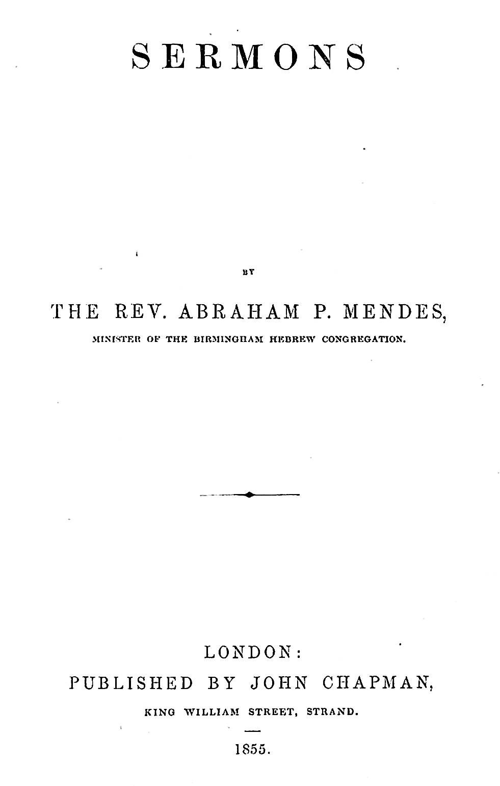 The author of the book, which includes sermons preached in Birmingham and at the Bevis Marks Synagogue in London, was Abraham Pereira Mendes.