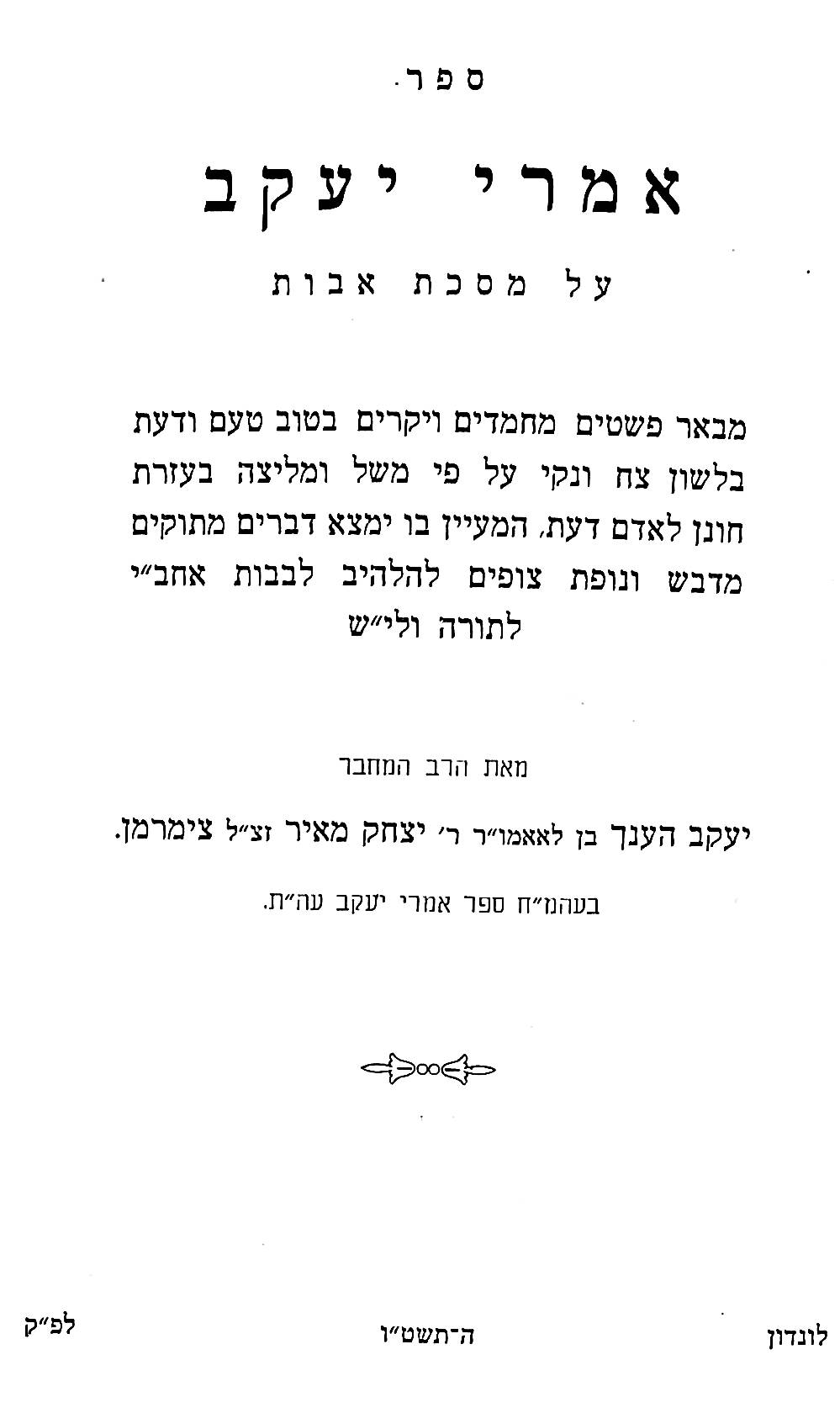 This is the second of two books written by Rabbi Cymerman and published in London. I have previously written about the first book, published in 1944, also called Imrei Yaakov, with Rabbi Cymerman’s commentary on the Torah.