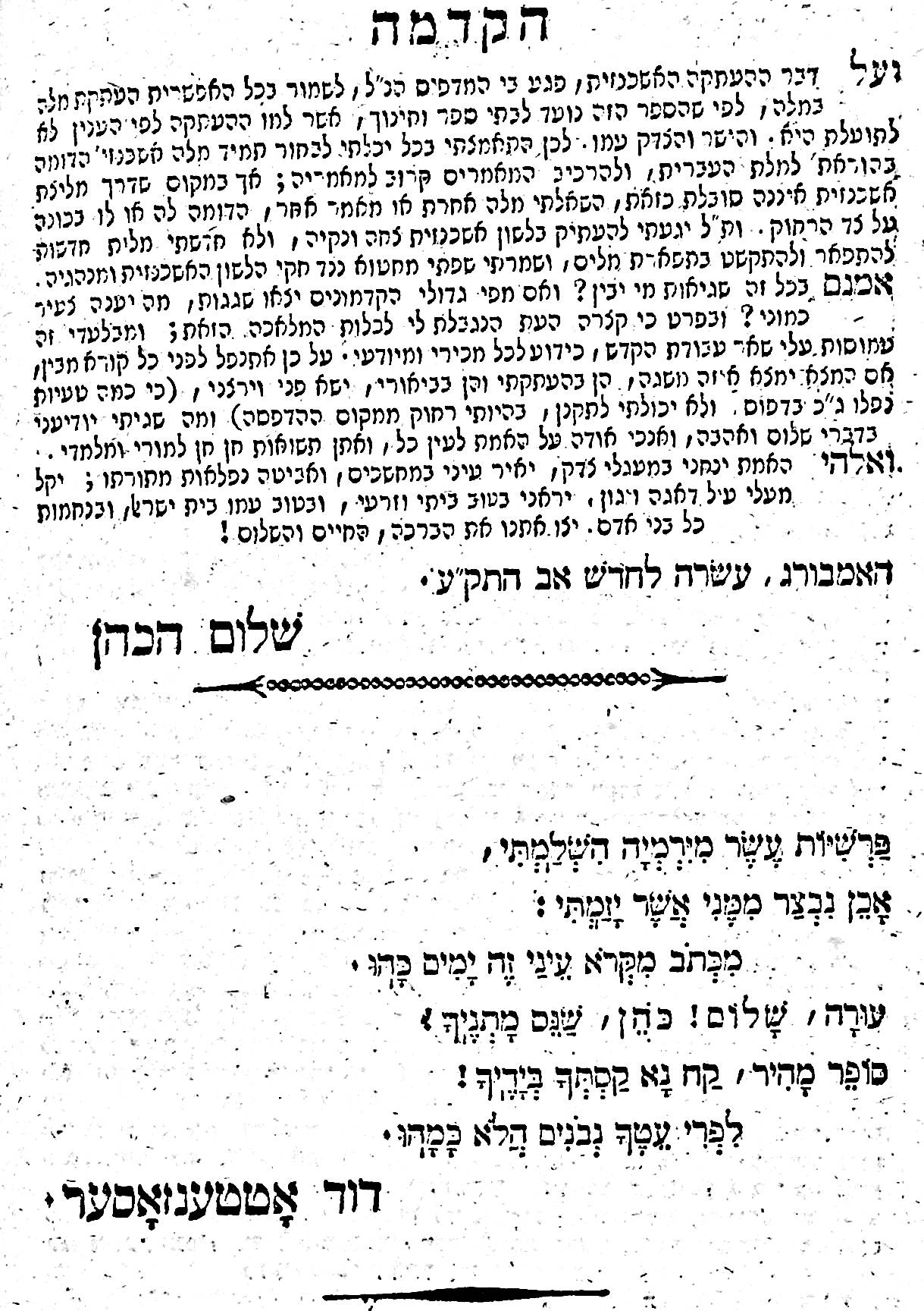 The rest of the translation and commentary was done by Rabbi Shalom Cohen. Shalom ben Jacob Cohen (1772–1845) was a Hebrew writer, poet and scholar. He was born in Mezirich in Poland. Cohen went to Berlin in 1789 and served as a teacher as well as the editor of Ha-Me’assef (in the years 1809–11), a periodical which aimed to spread the use of the Hebrew language among educated Jewish youth. In 1813 Cohen left Germany, spent a short period in Amsterdam, and moved to London where he tried unsuccessfully to establish a Jewish school and published a text book for Jewish youth, Shorshei Emunah in 1815 – a book that I have and have written about previously.