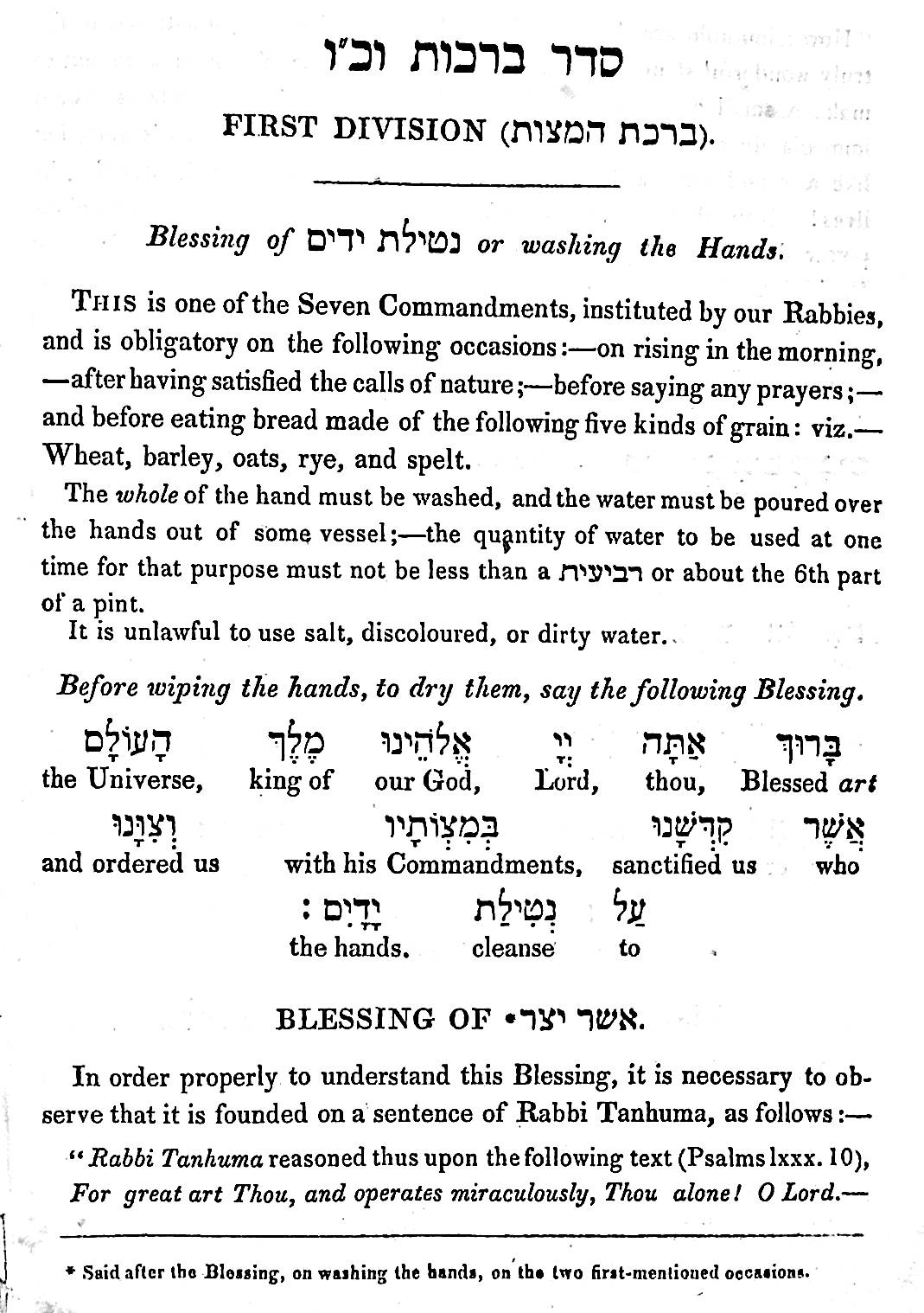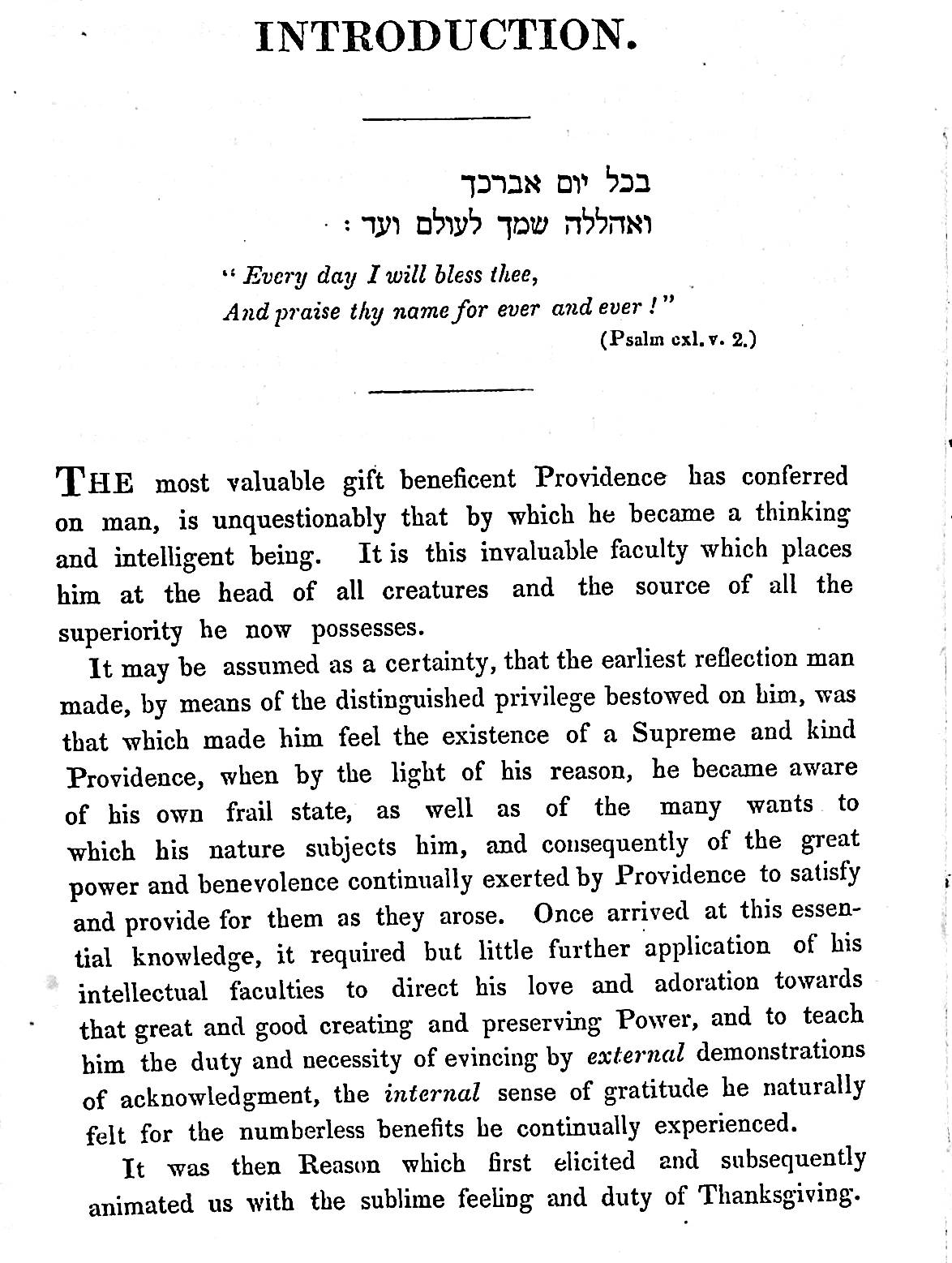It is a manual on Jewish blessings, in Hebrew with an English translation and interesting explanations of blessings and customs. The English translations, printed under the Hebrew words, are from right to left. There is an introductory essay on the nature of thanksgiving.