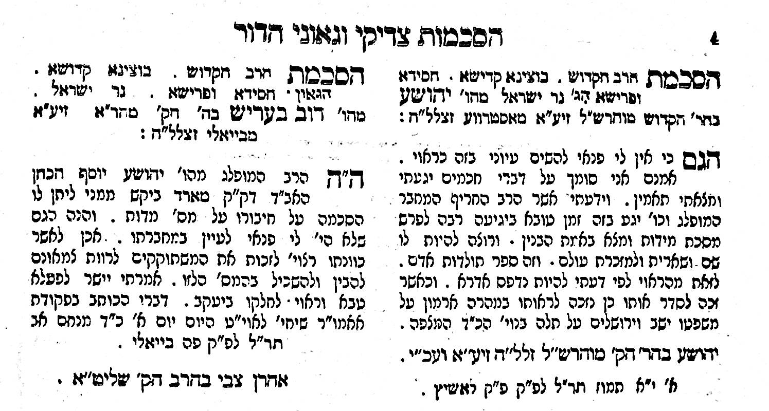 - Rabbi Yehoshua, the son of the Mohorshal of Osnovice.