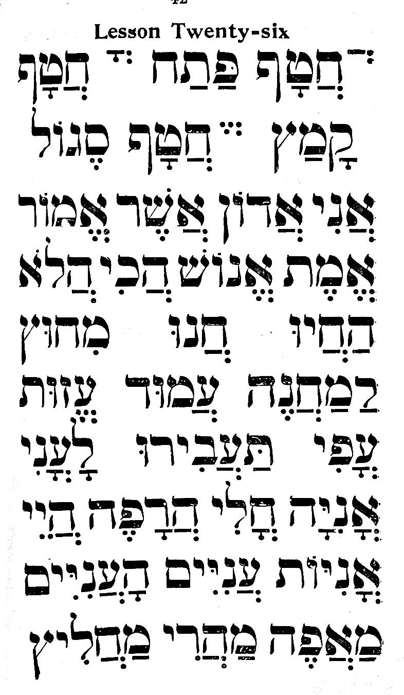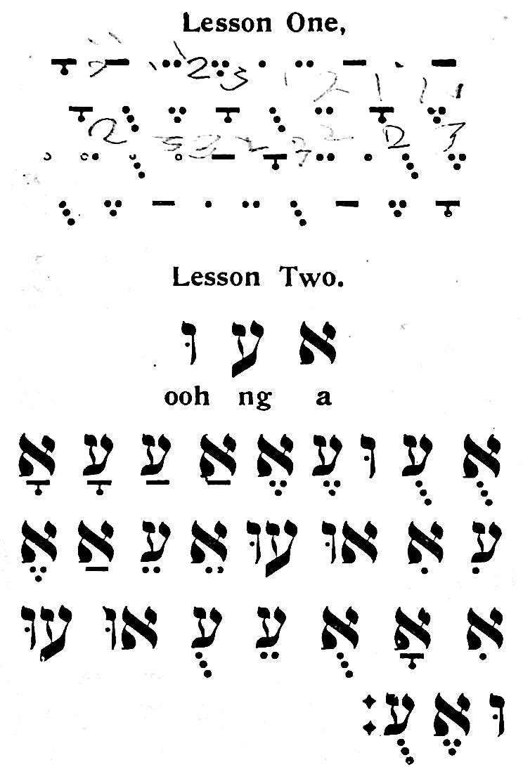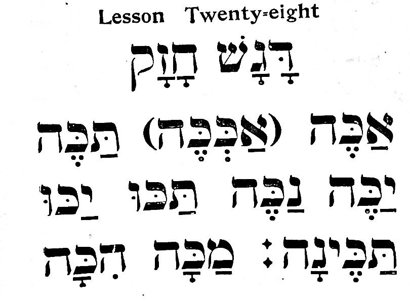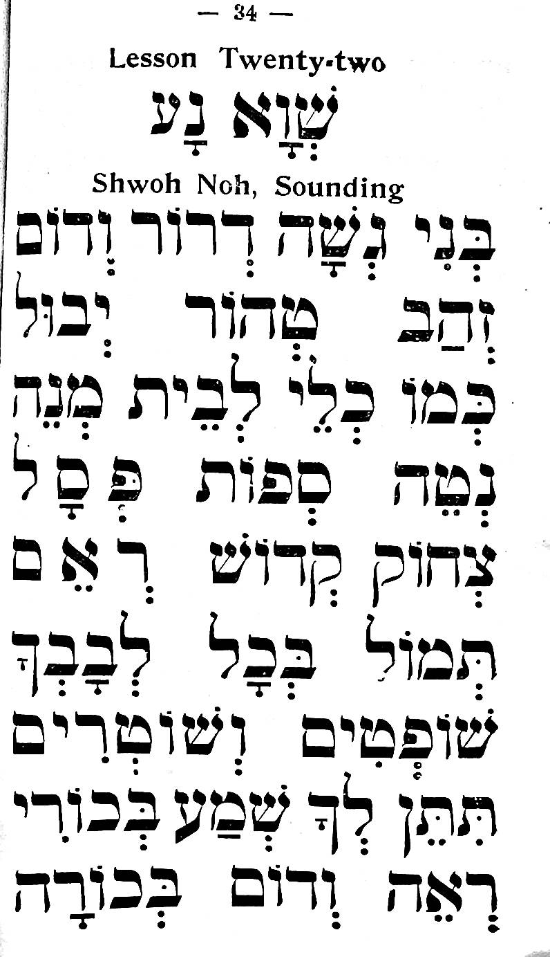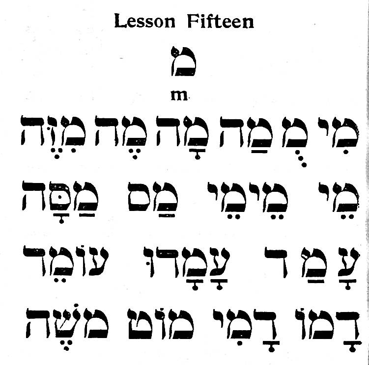 I wonder what the children made of the rather Germanized names of the letters: Alef, Beth, Weth, Geemel, Daleth, Hey, Waw, Sajin, Cheth, etc.