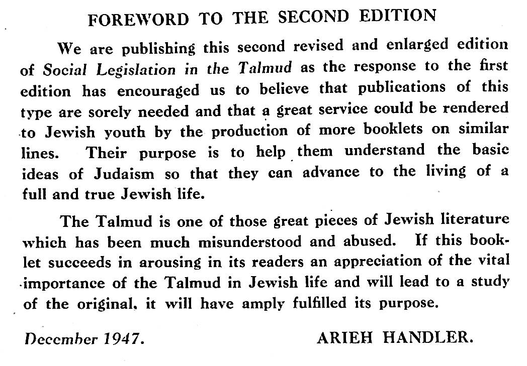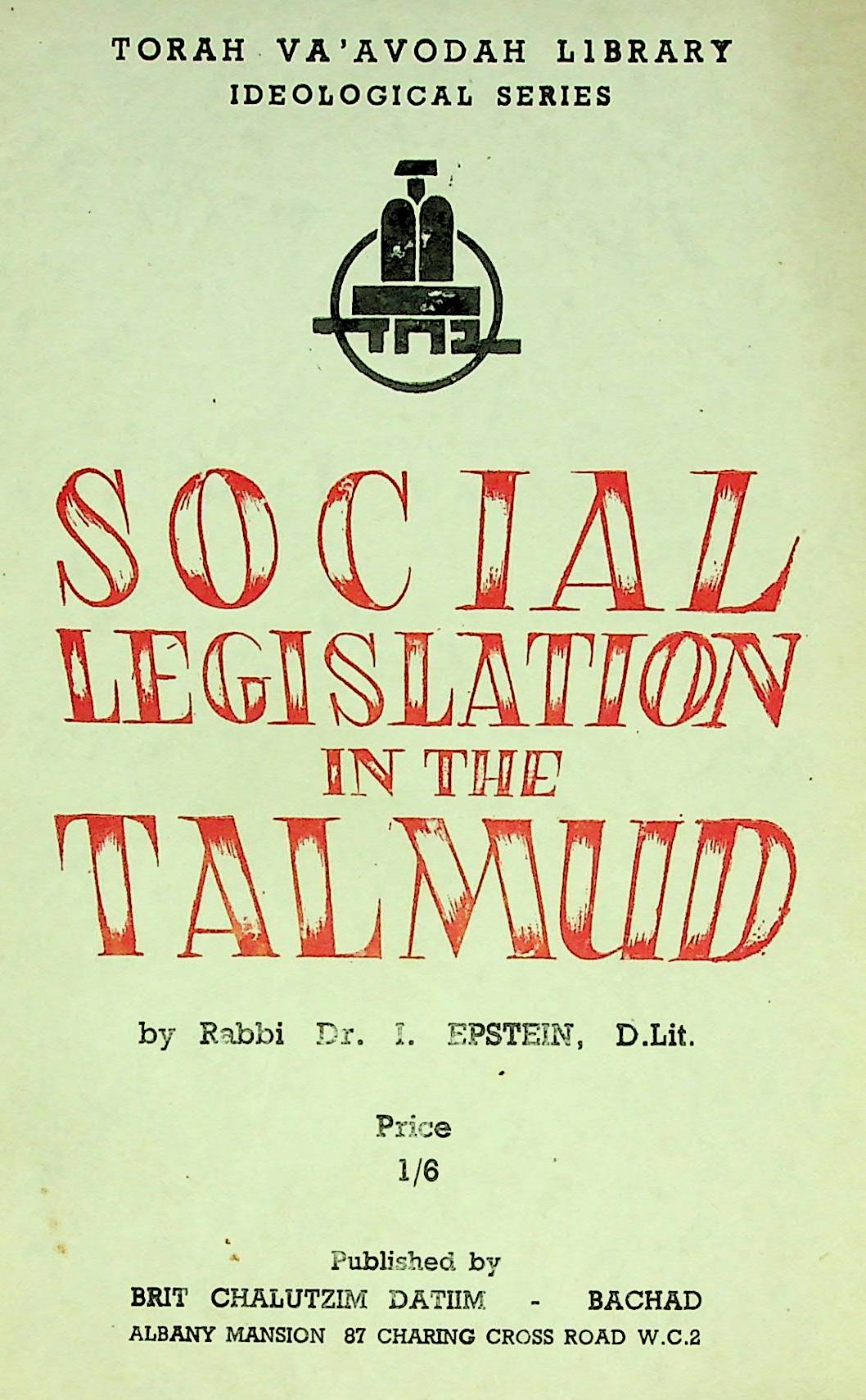 By 1945 Bachad was producing educational materials in England, of which I have previously written about the first publication in the ‘Torah Va’Avodah Library’, a biography of Rabbi Samuel Mohilever. ‘Social Legislation in the Talmud’ was printed in 1947.