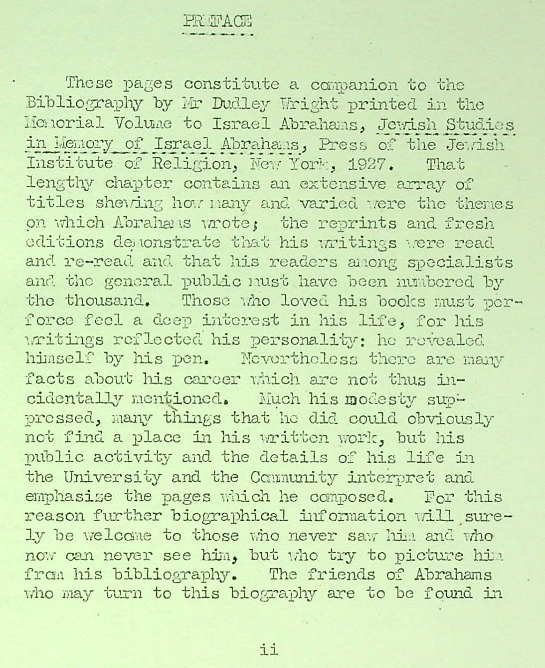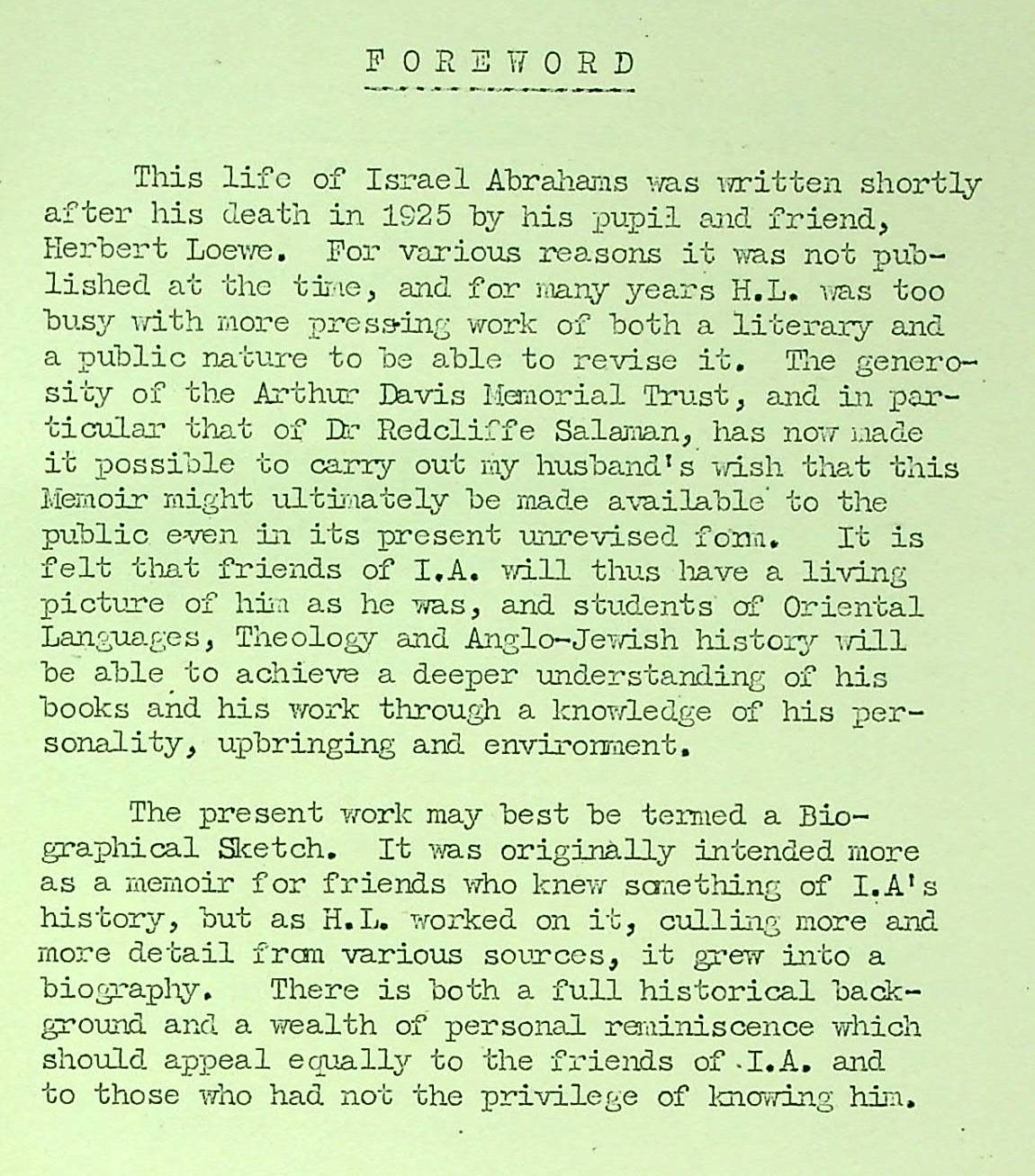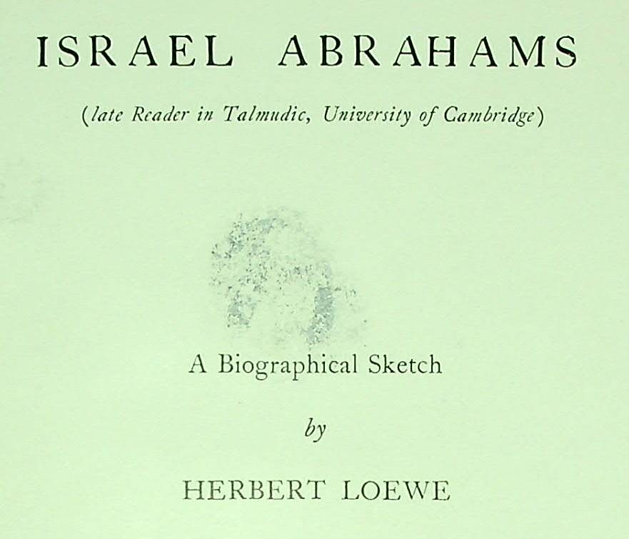 Israel Abrahams died over a hundred years ago, in 1925, leaving a large legacy of writing. The book, by his friend, Herbert Loewe, was written in 1925/6, but not published until 1944. Herbert Loewe had died in 1940, and this book was privately printed as a reproduction of typescript.