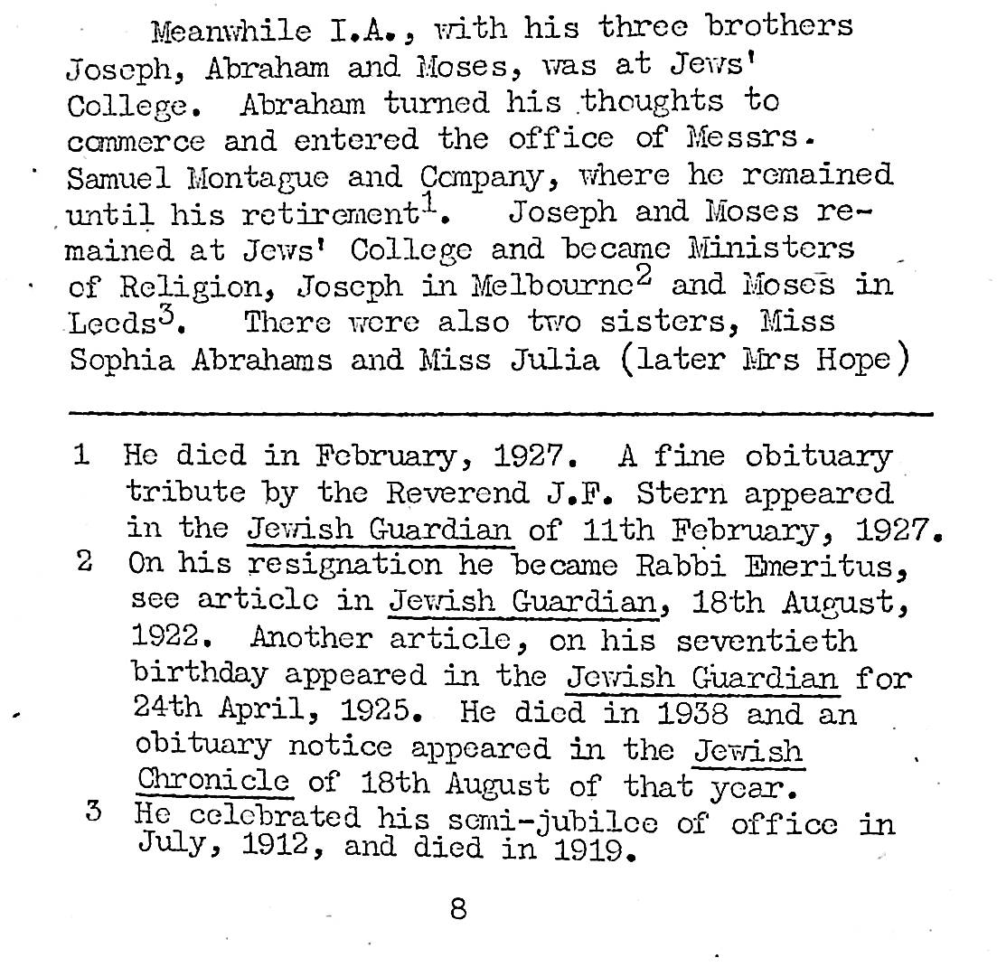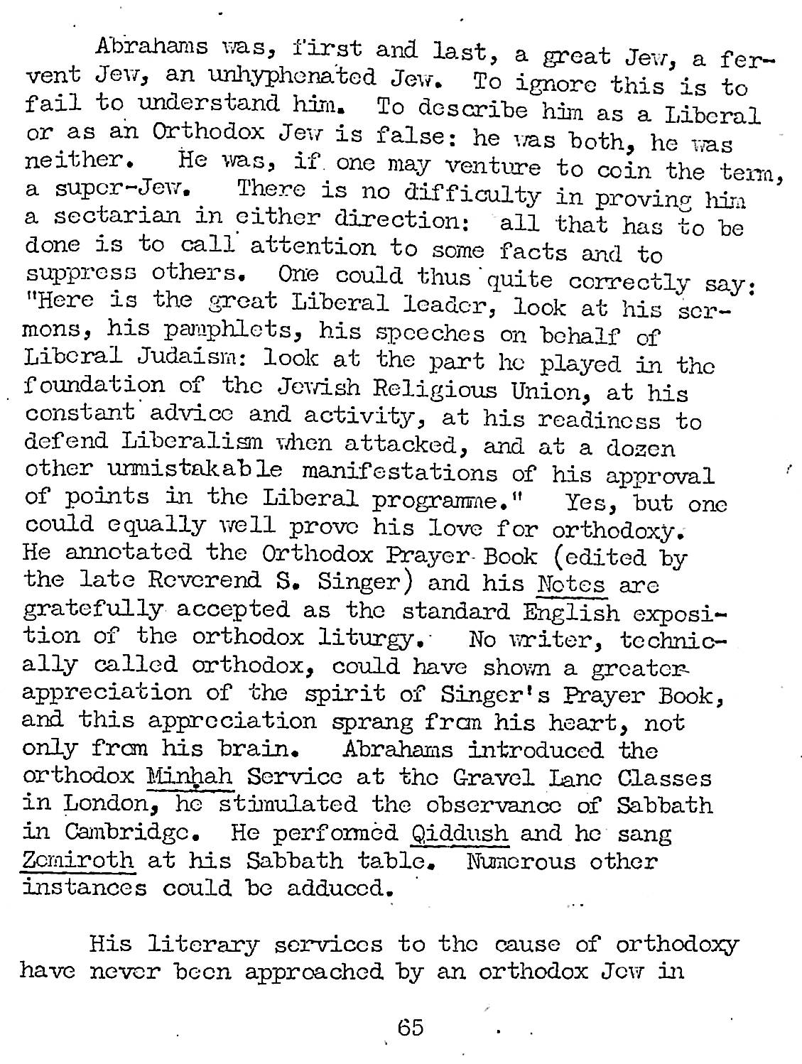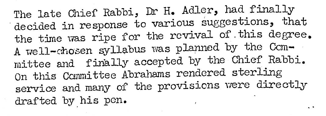 His father-in-law was Rev. Simeon Singer, the author of the Authorized daily Prayer Book or Siddur known as the “Singer’s Prayer Book”, and Israel Abrahams wrote a companion volume explaining the Siddur in English, which was publsihed in 1922.