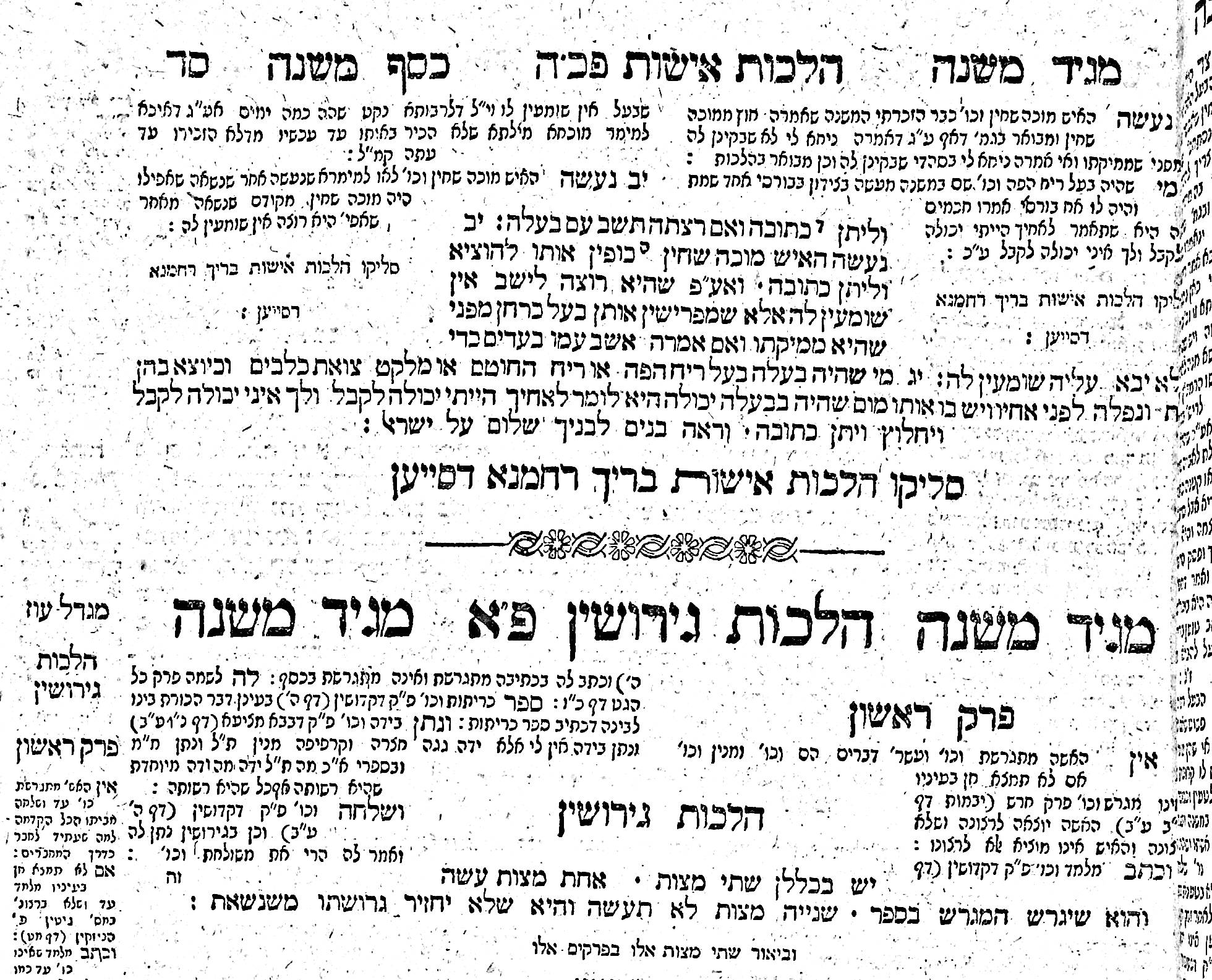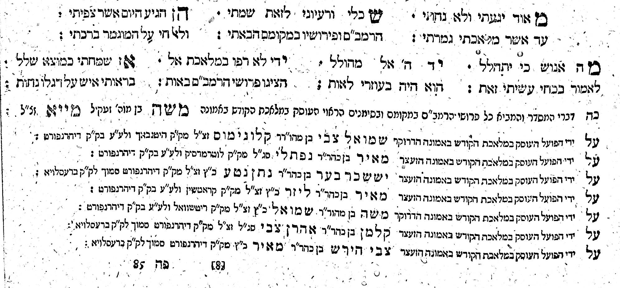 Printing a complete edition of the Mishneh Torah, with all the relevant commentaries of the day, setting the type by hand (as it was done in those days) and checking the text for errors was a huge task and accomplishment. On the last page of the last volume the typesetters and printers employees signed their names in print. They probably had a siyum – a festive celebration with a meal – to commemorate the event.