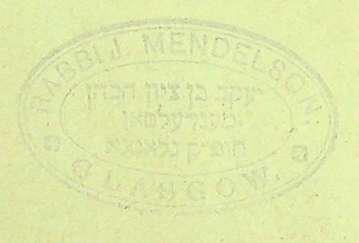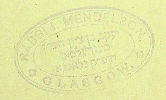 My copy has ownership stamps of Rabbi Yaakov Ben Zion Mendelsohn from his period in Glasgow.